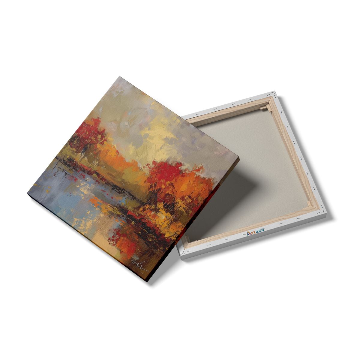 Schilderij Abstract Kunstwerk van een Rivier en Bomen