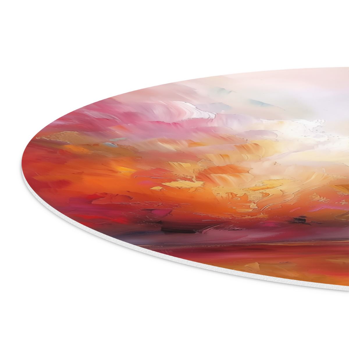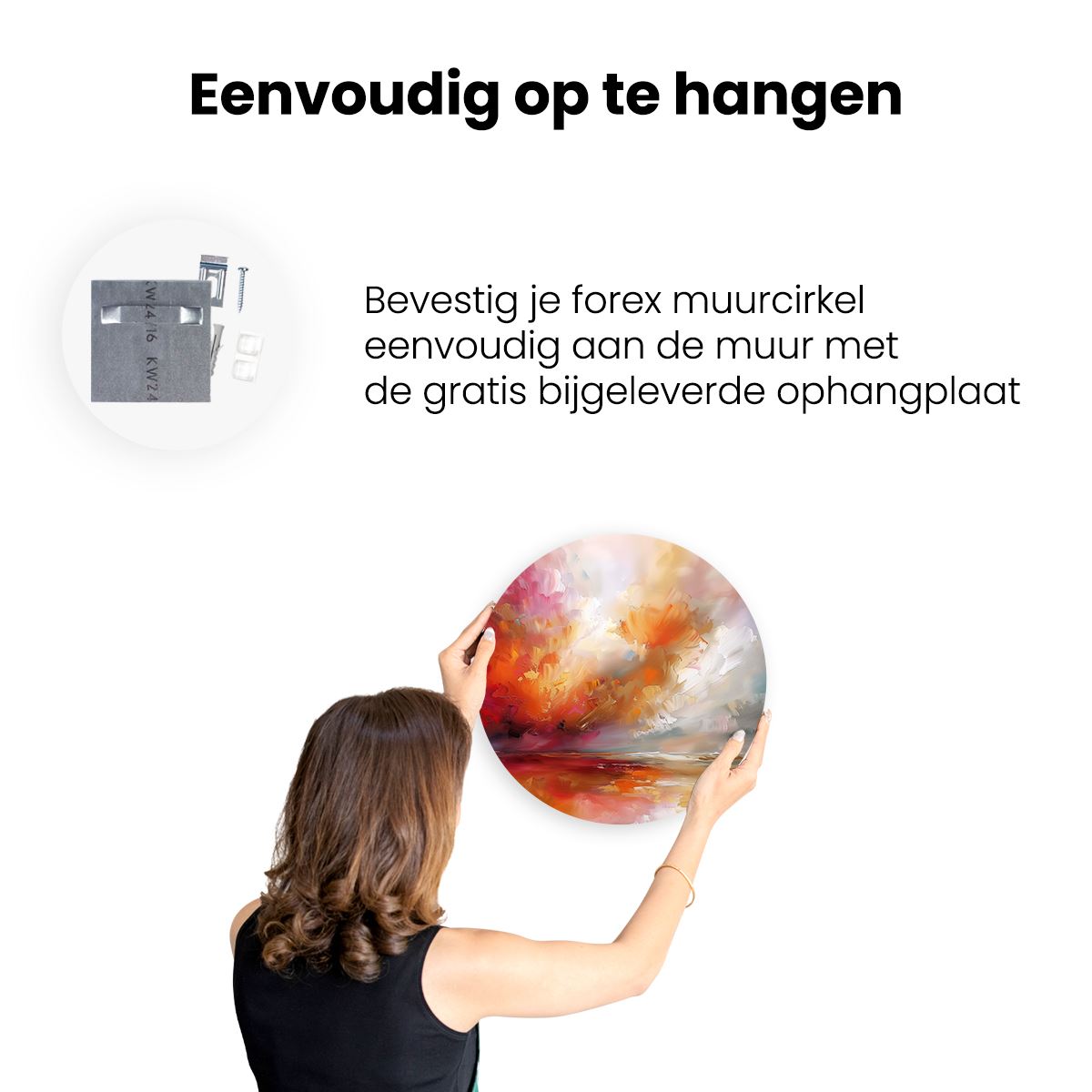 Wandcirkel Abstract Kunstwerk van een Rode, Oranje en Gele Lucht