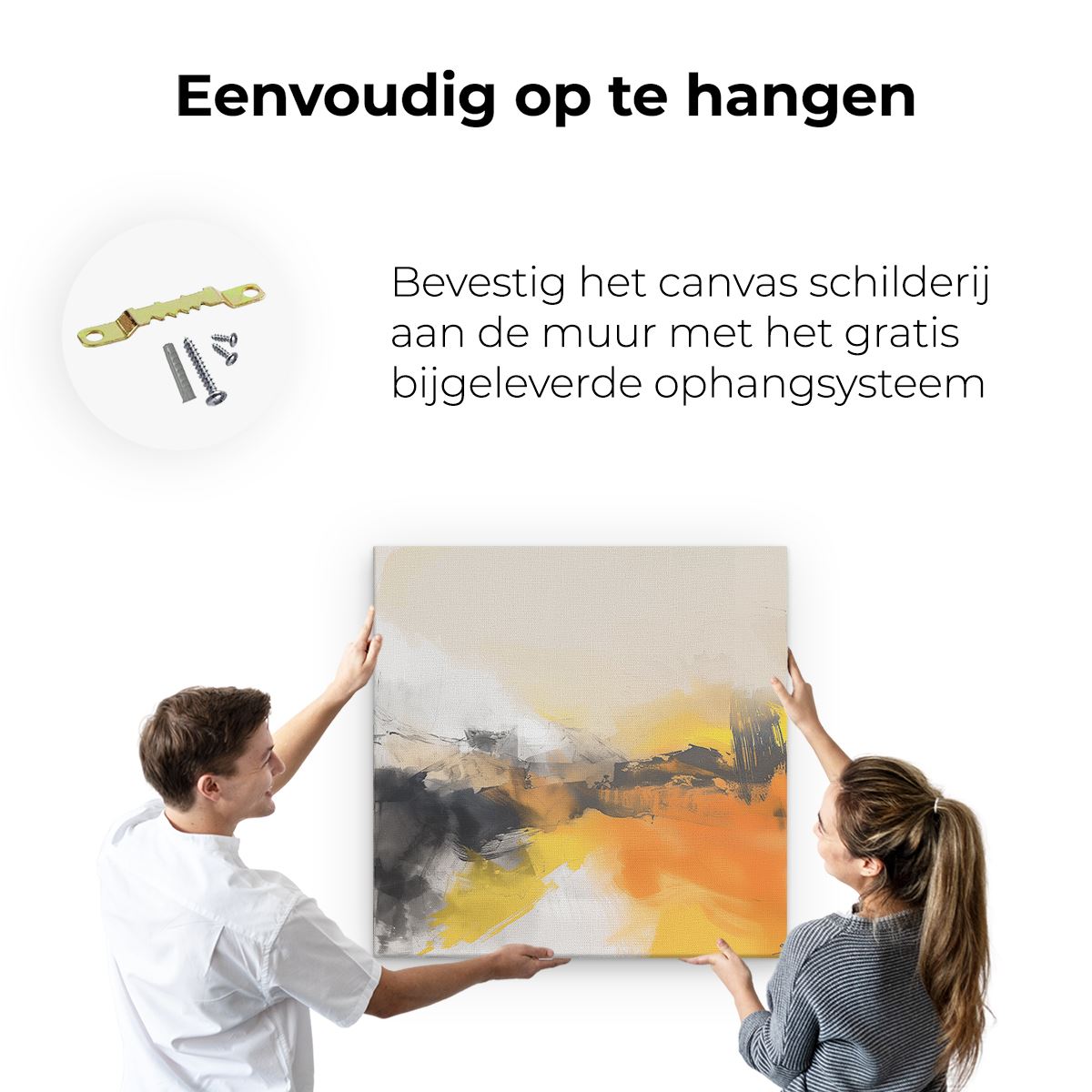 Bij aankoop ontvang je een meegeleverd ophangsysteem, zodat je op een simpele en snelle wijze het schilderij boven de bank of bed kan monteren.