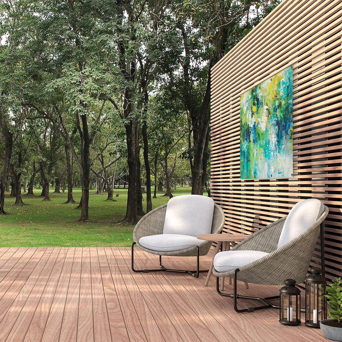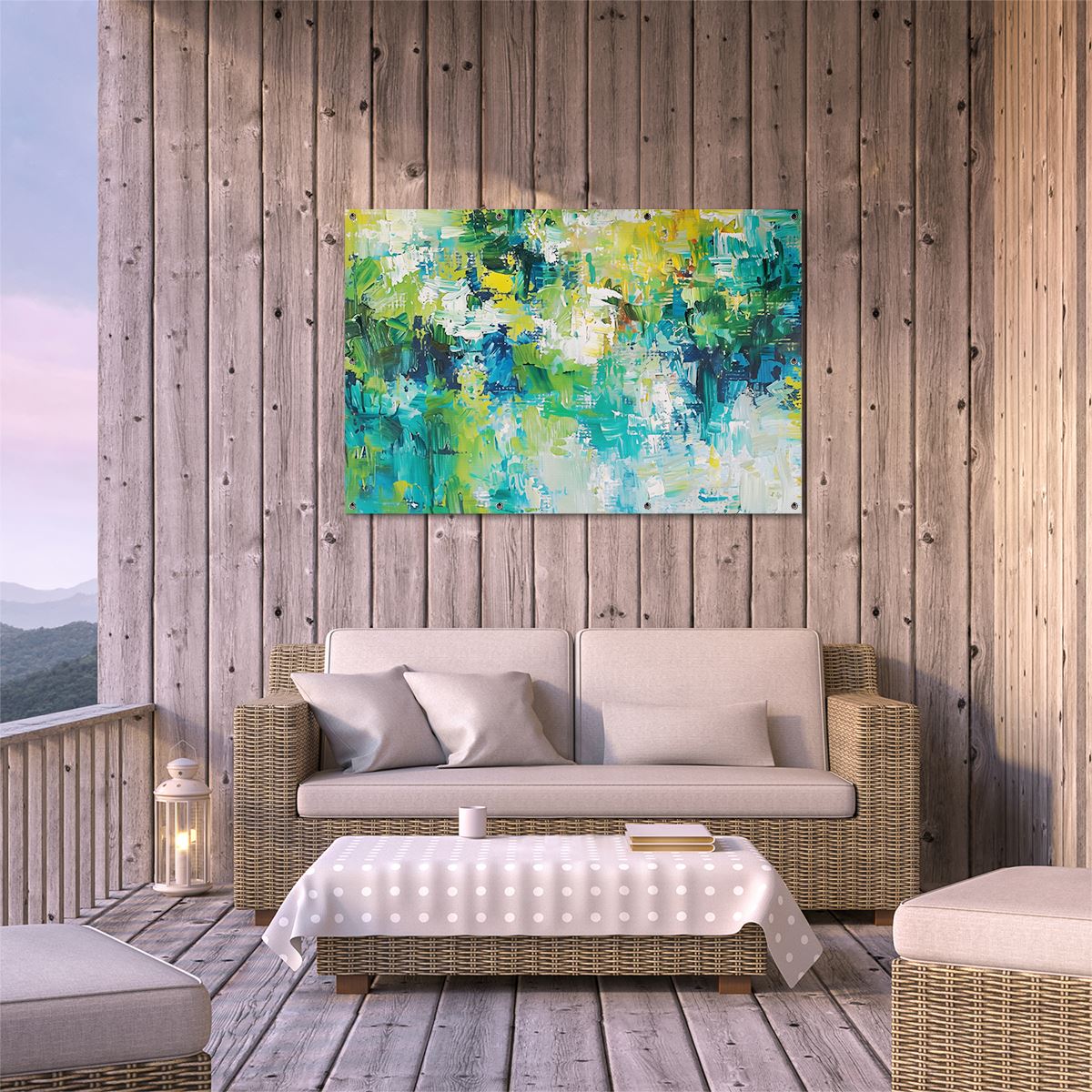 Tuinposter Abstract Kunstwerk van Groen, Blauw en Geel