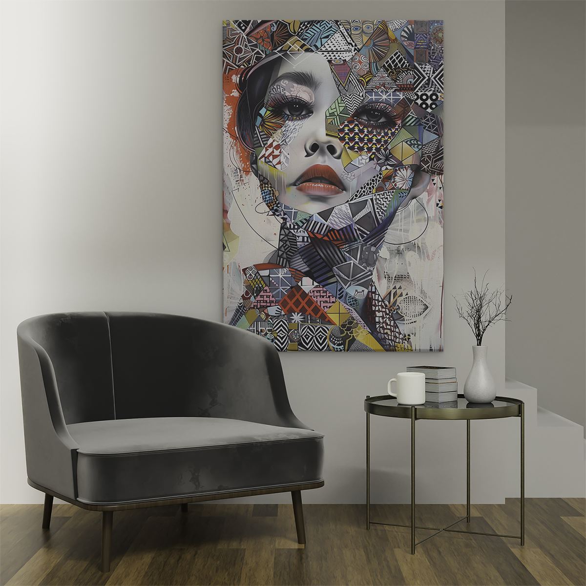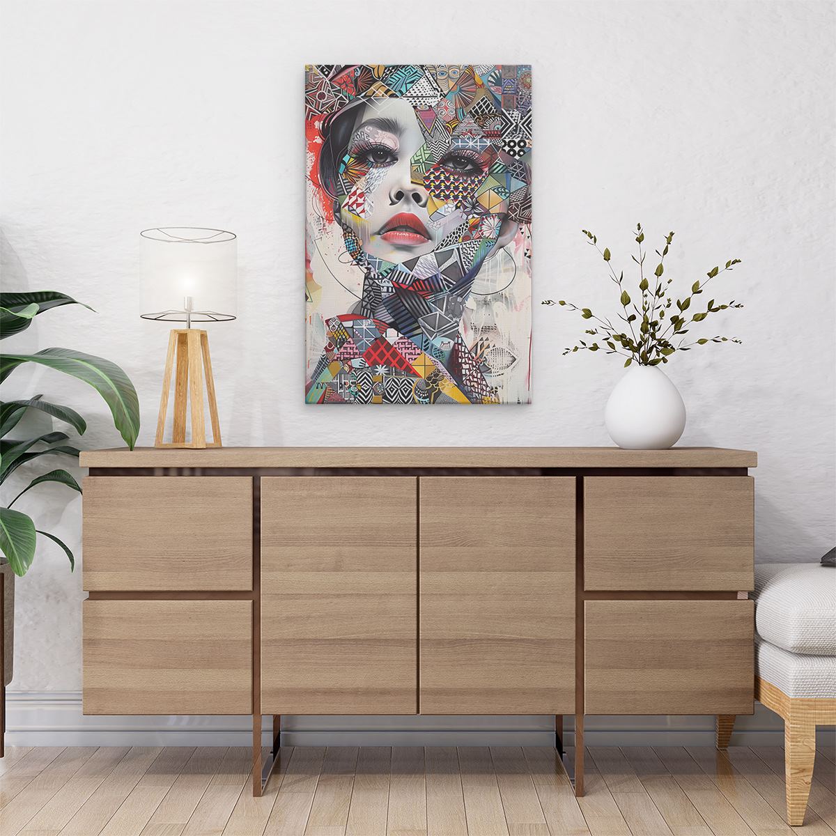 Schilderij Abstract Kunstwerk van het Gezicht van een Vrouw