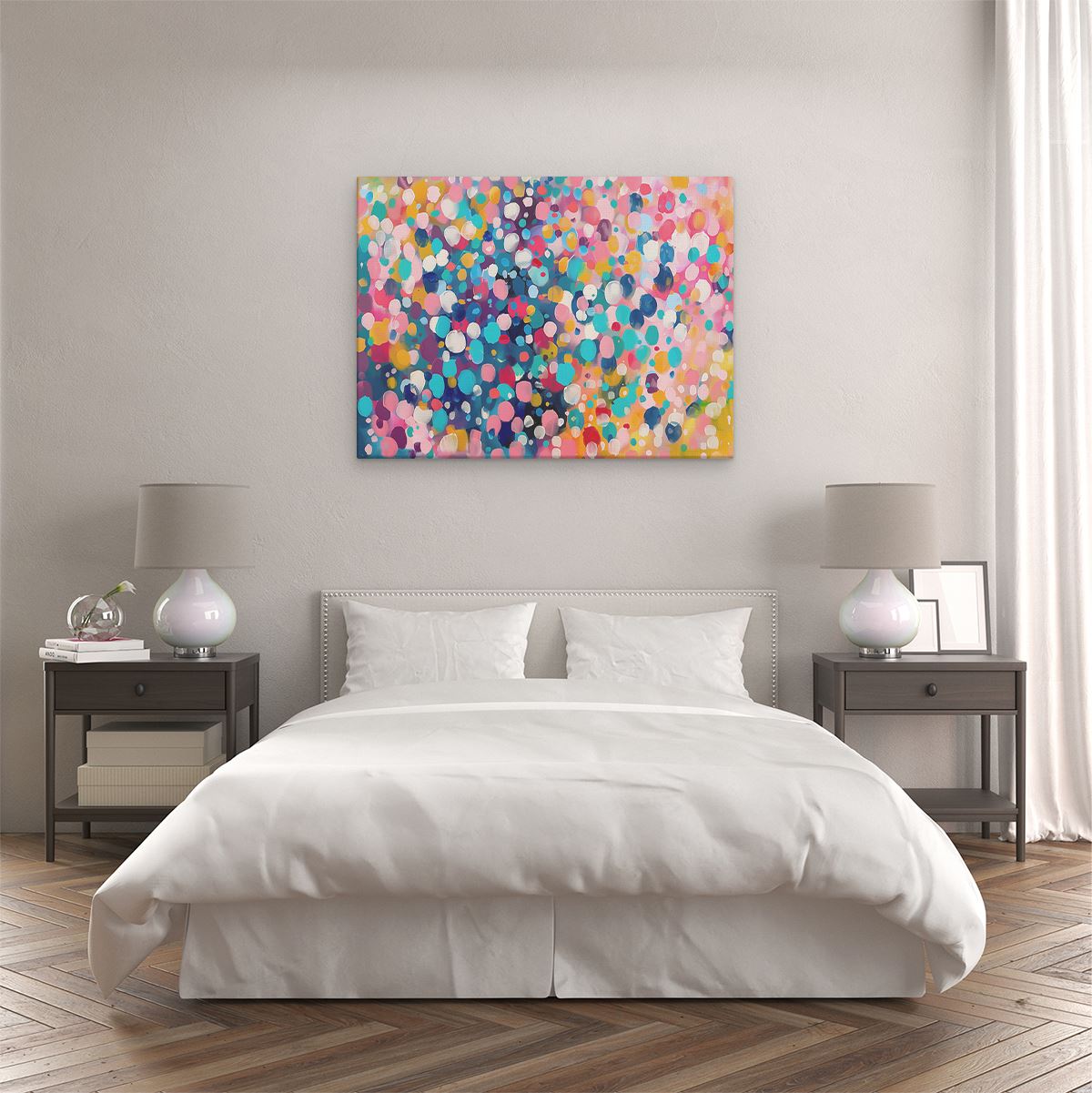 Schilderij Abstract Kunstwerk van Kleurrijke Stippen