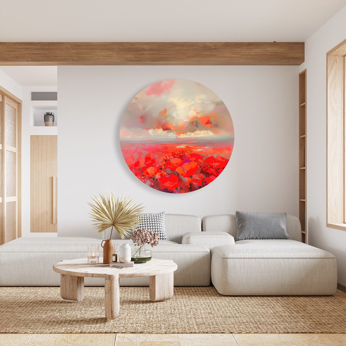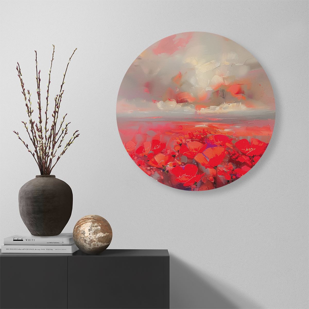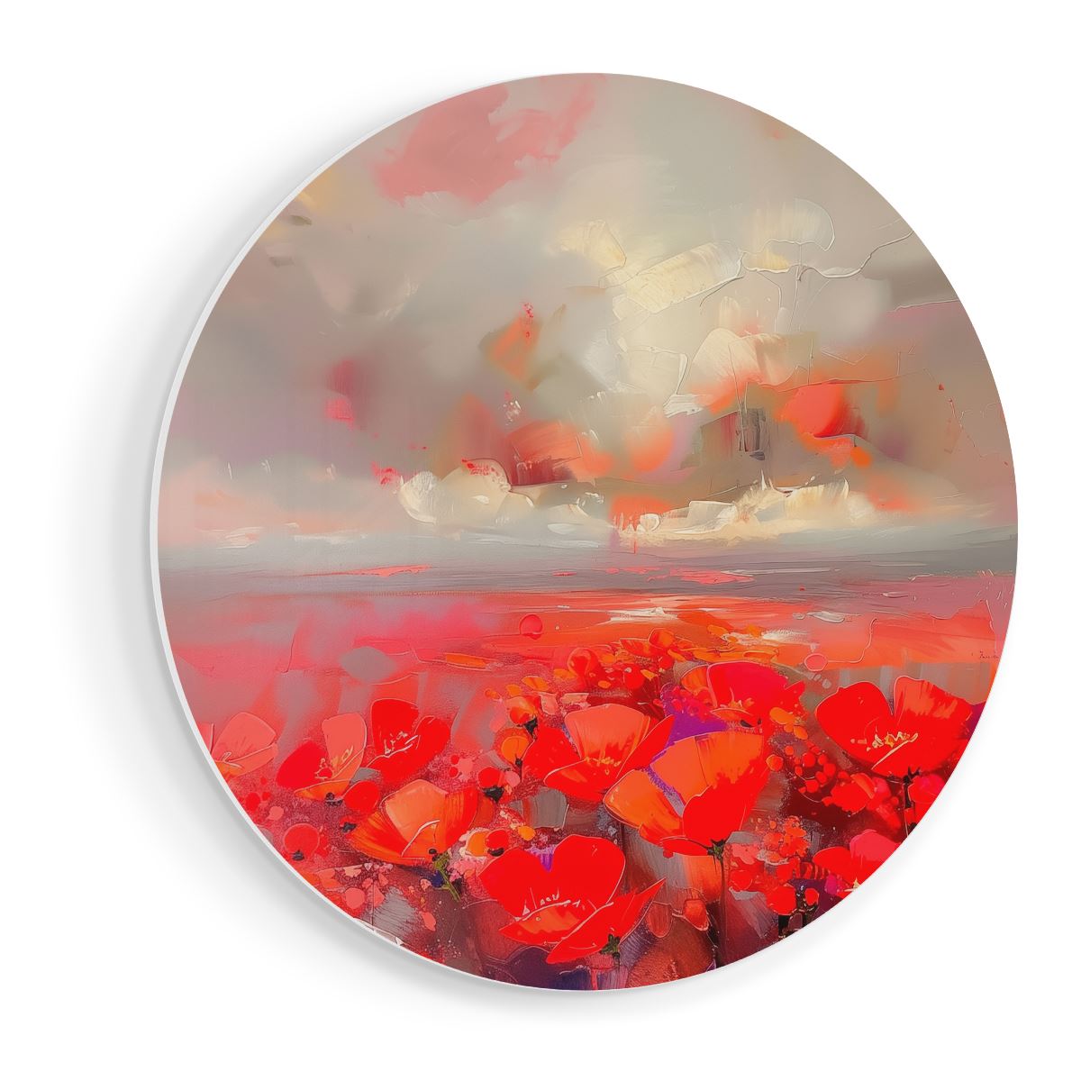 Wandcirkel Abstract Kunstwerk van Rode Klaprozen