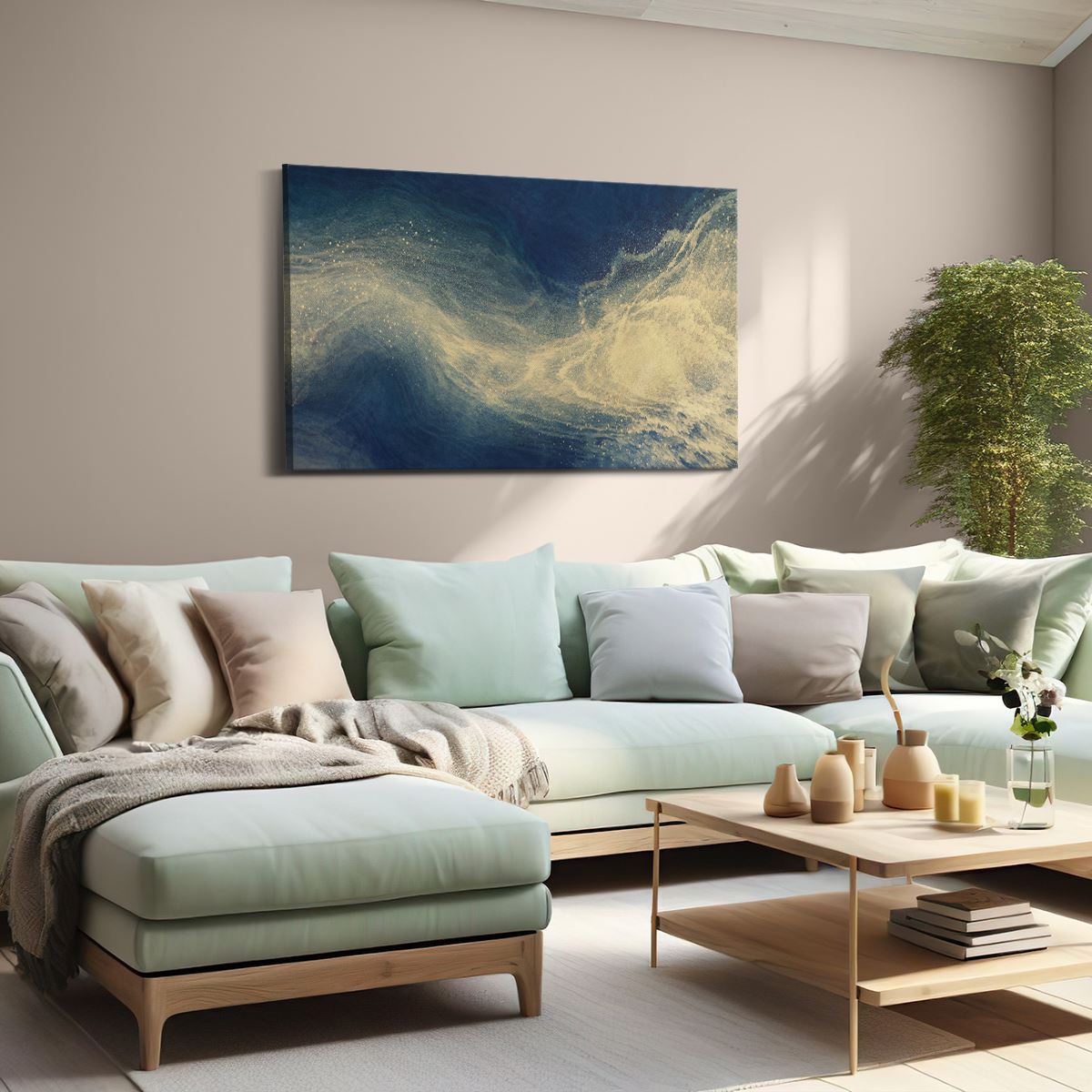 Schilderij Abstracte Kunst - Blauw met Gouden Glitters