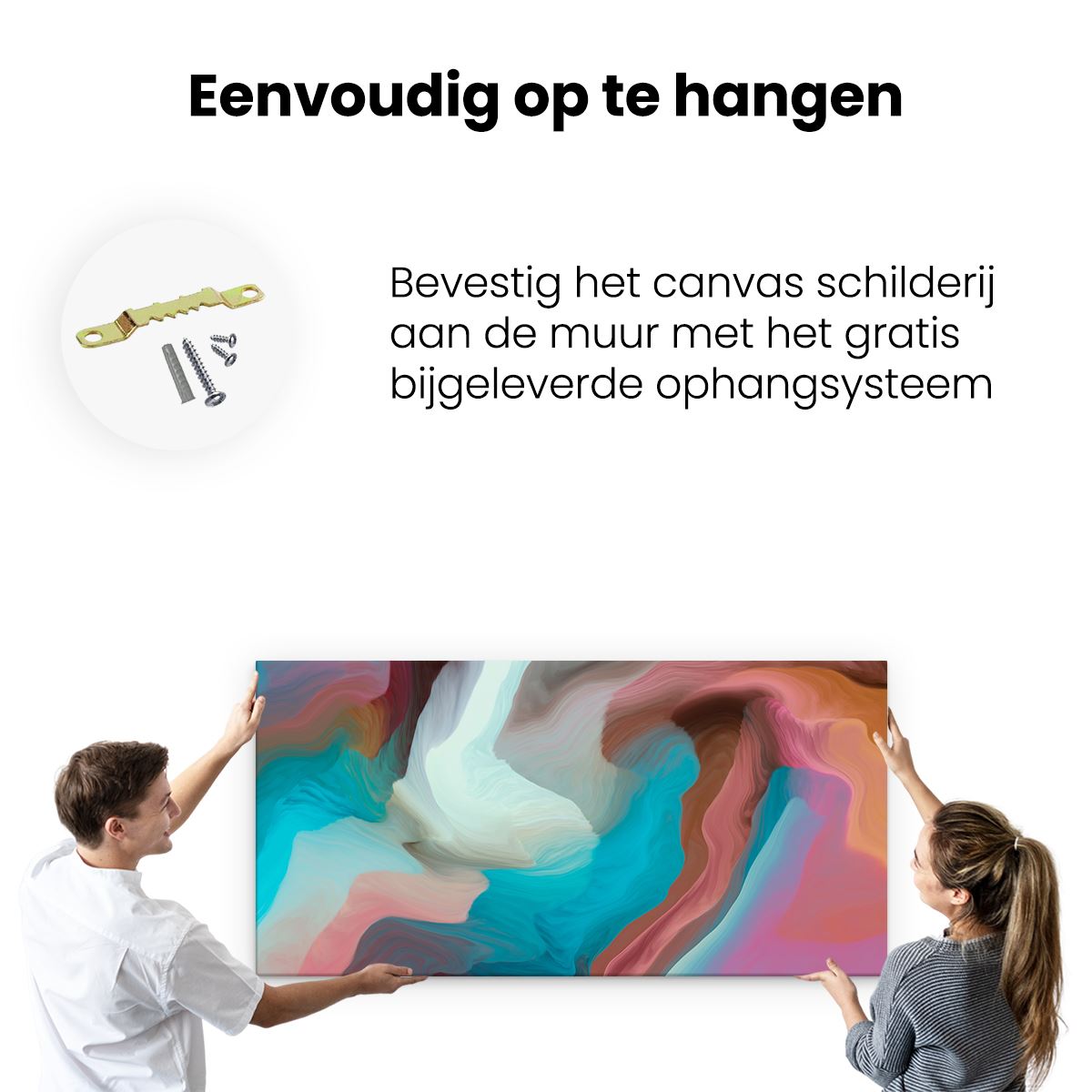 Bij aankoop ontvang je een meegeleverd ophangsysteem, zodat je op een simpele en snelle wijze het schilderij boven de bank of bed kan monteren.