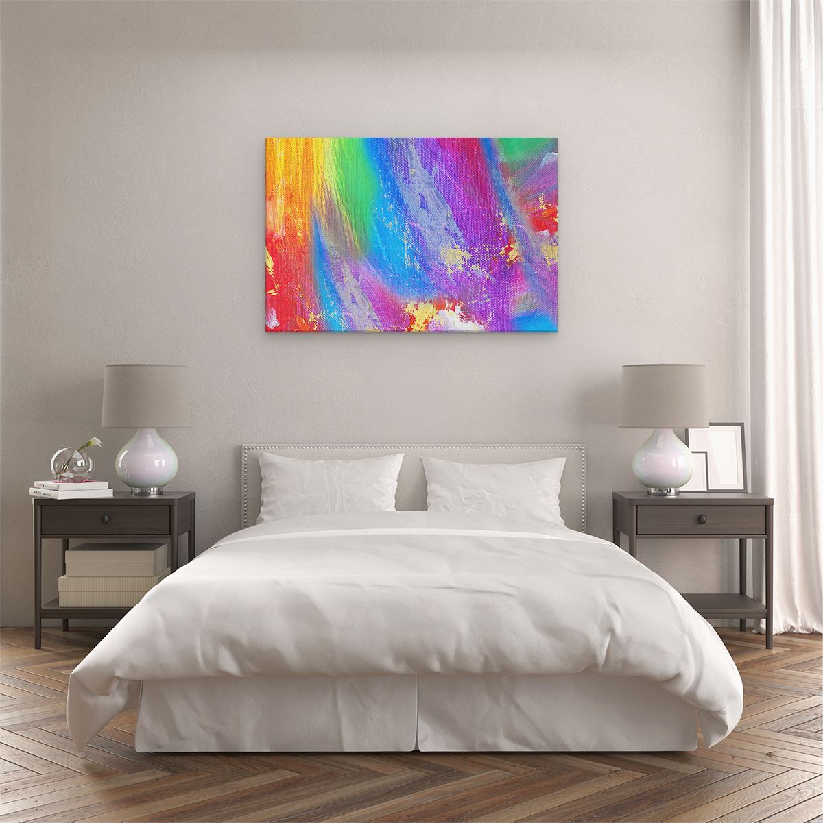 Bij aankoop ontvang je een meegeleverd ophangsysteem, zodat je op een simpele en snelle wijze het schilderij boven de bank of bed kan monteren.