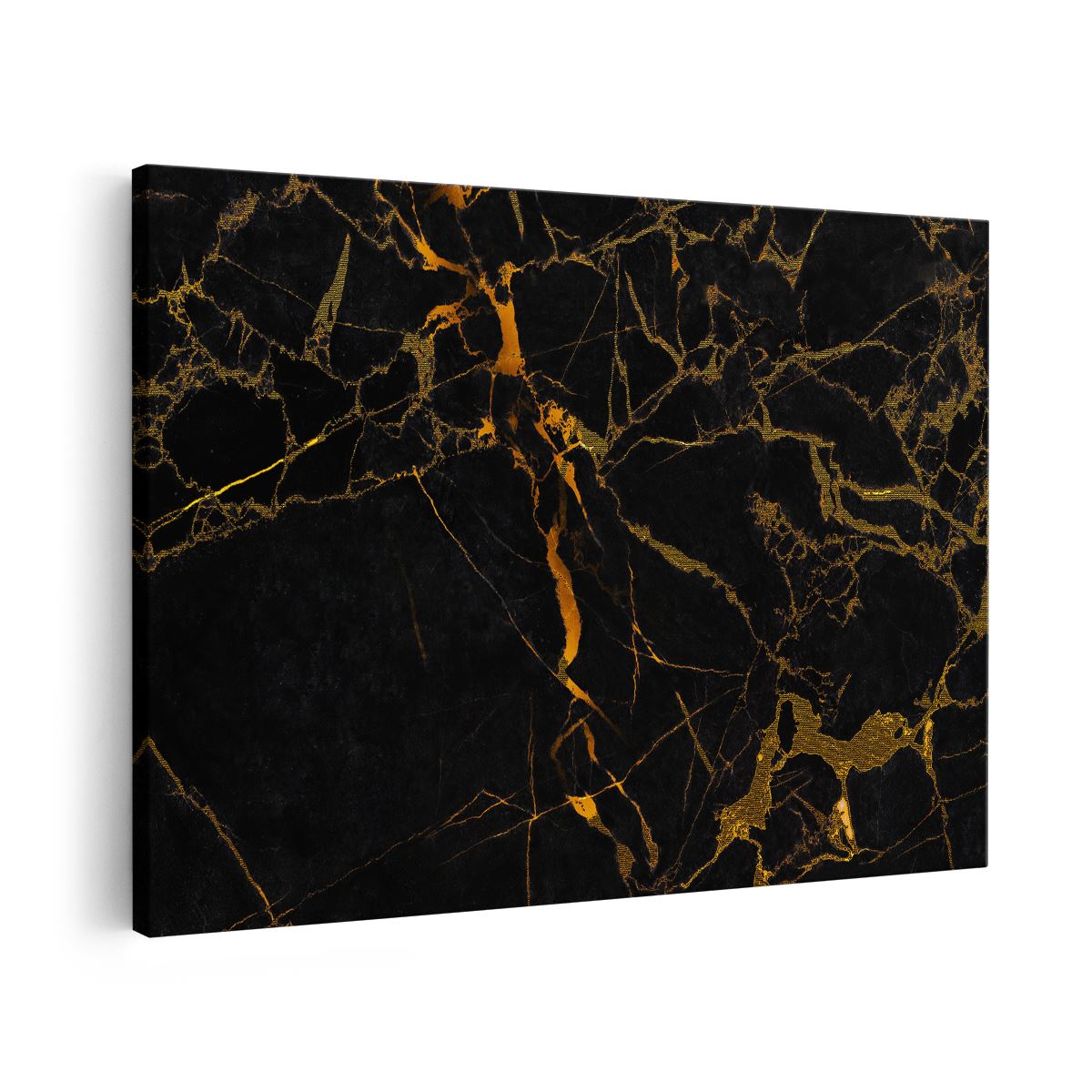 Schilderij Abstracte Kunst - Zwart met Gouden Strepen