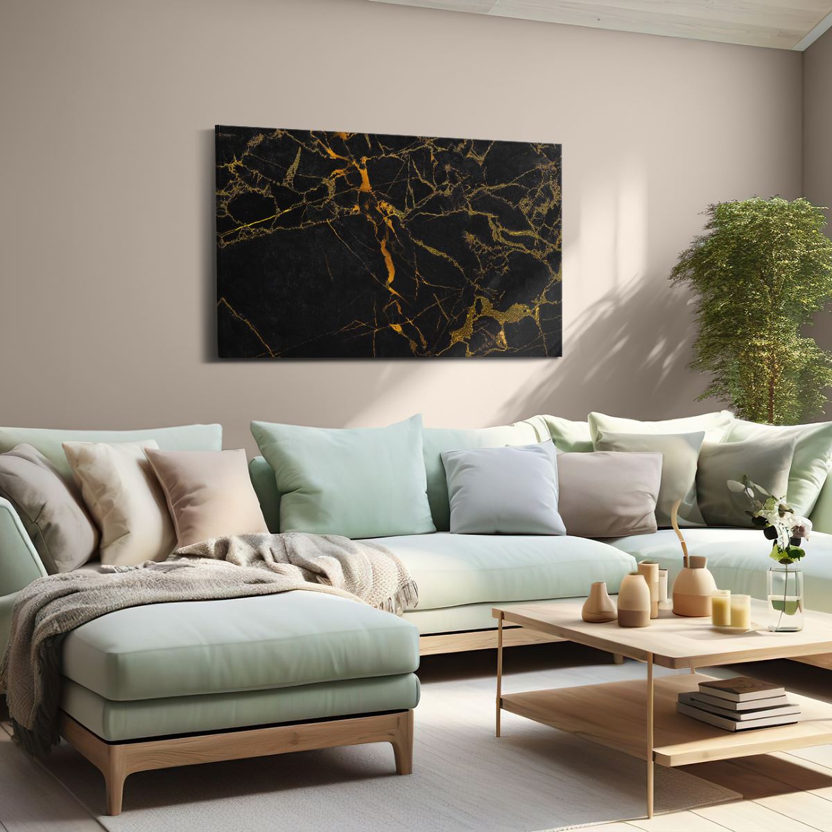 Bij aankoop ontvang je een meegeleverd ophangsysteem, zodat je op een simpele en snelle wijze het schilderij boven de bank of bed kan monteren.