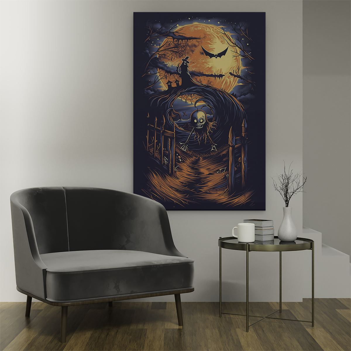 Schilderij Afbeelding van een Skelet voor een Volle Maan