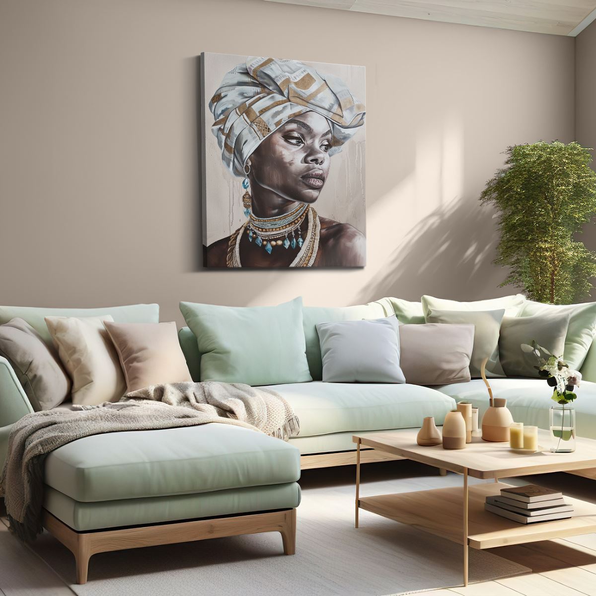 Schilderij Afrikaanse Vrouw die een Tulband Draagt