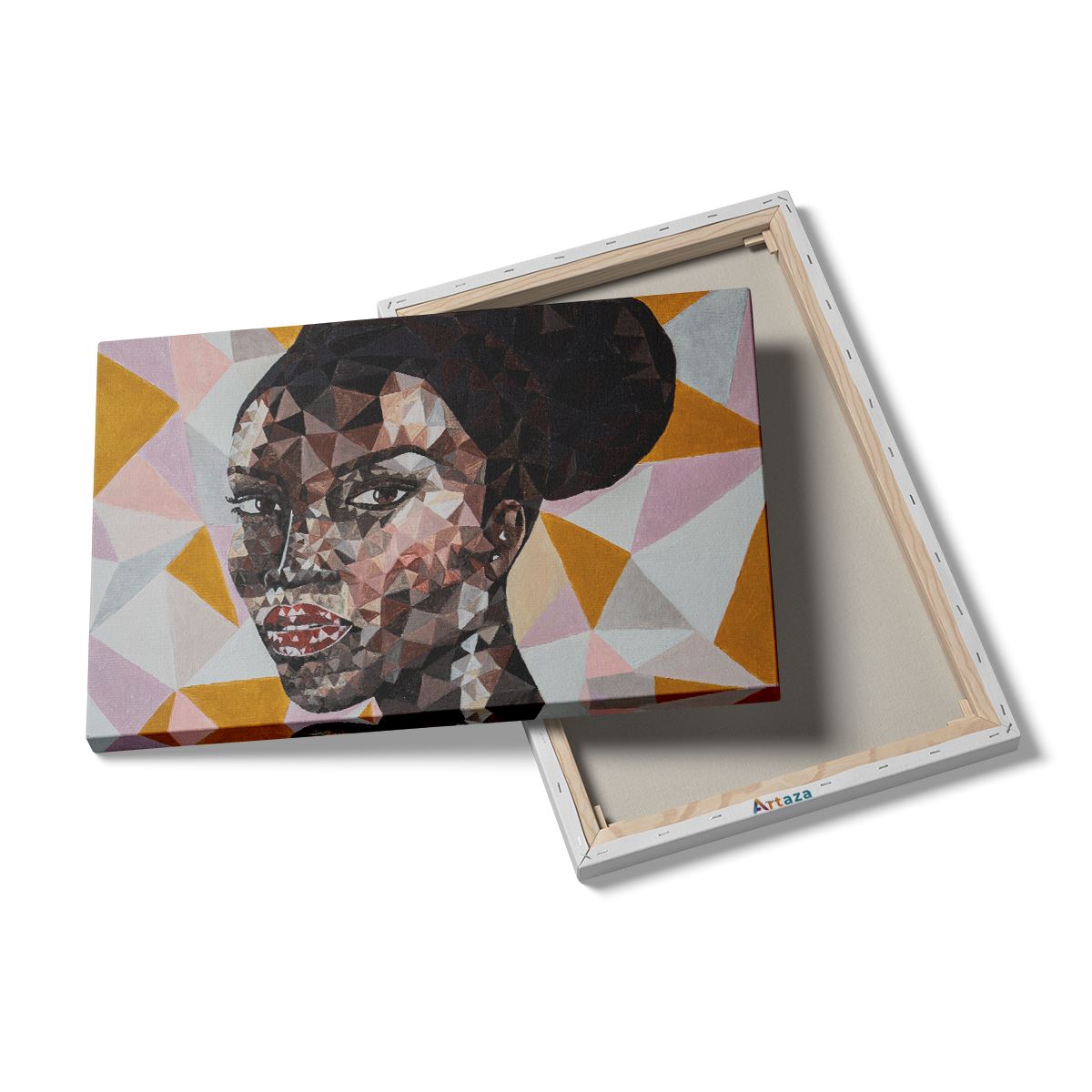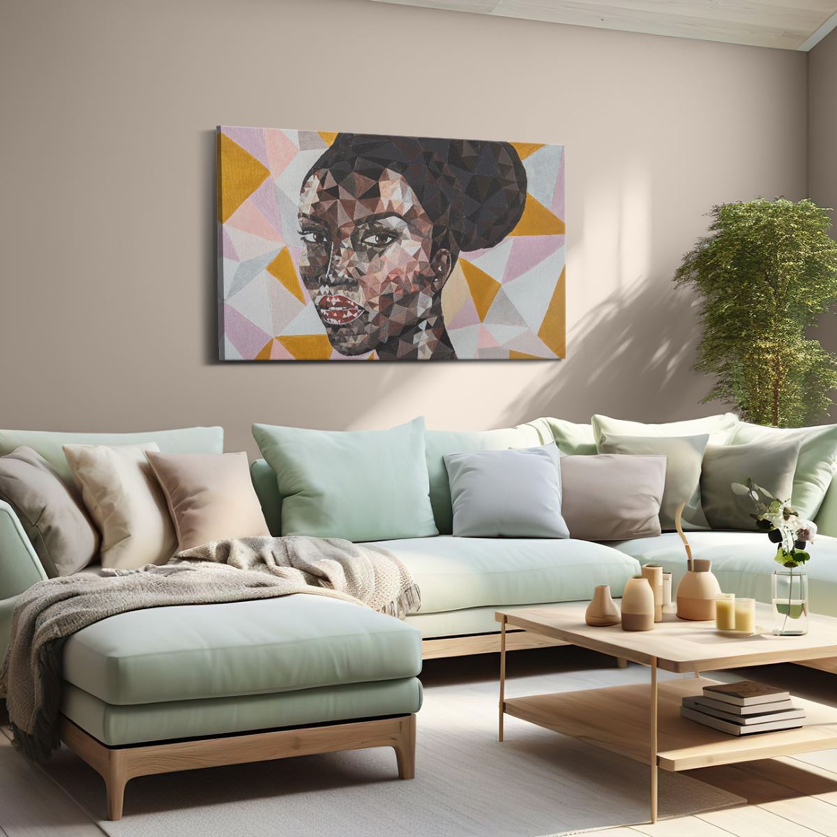 Schilderij Afrikaanse Vrouw In Driehoekjes - Abstract