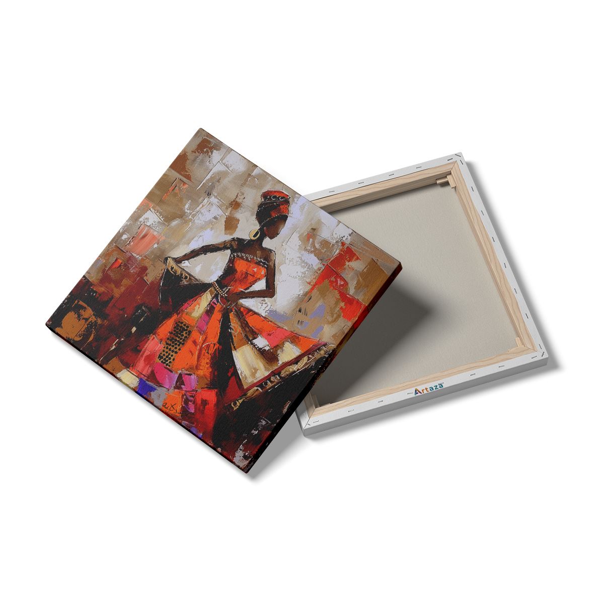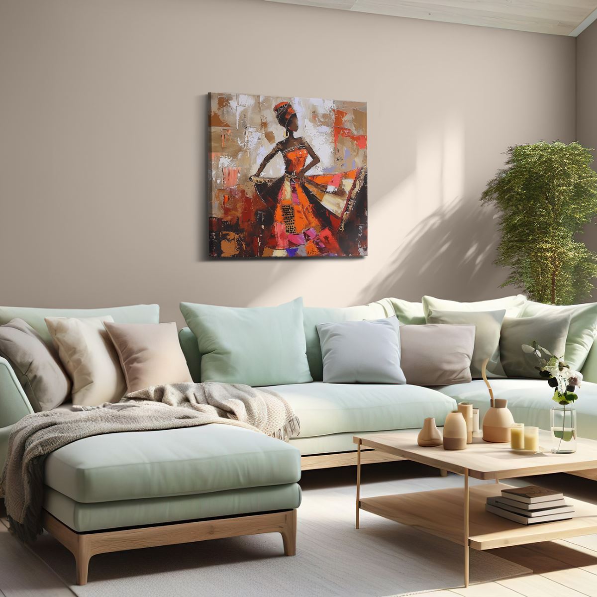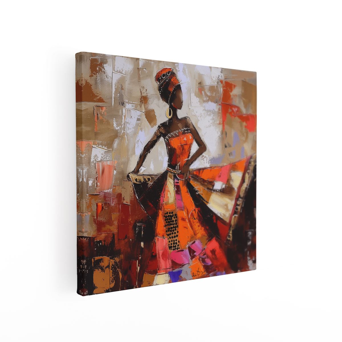 Schilderij Afrikaanse Vrouw in een Oranje Jurk