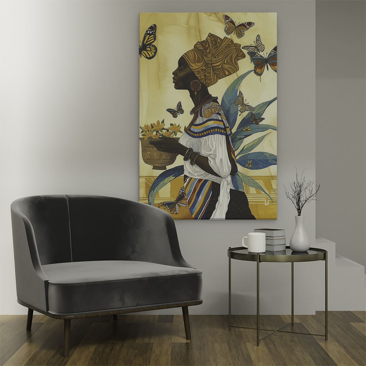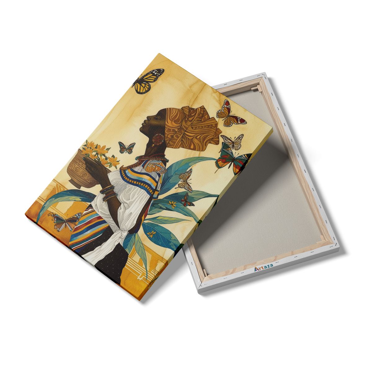 Schilderij Afrikaanse Vrouw met een Mand met Vlinders