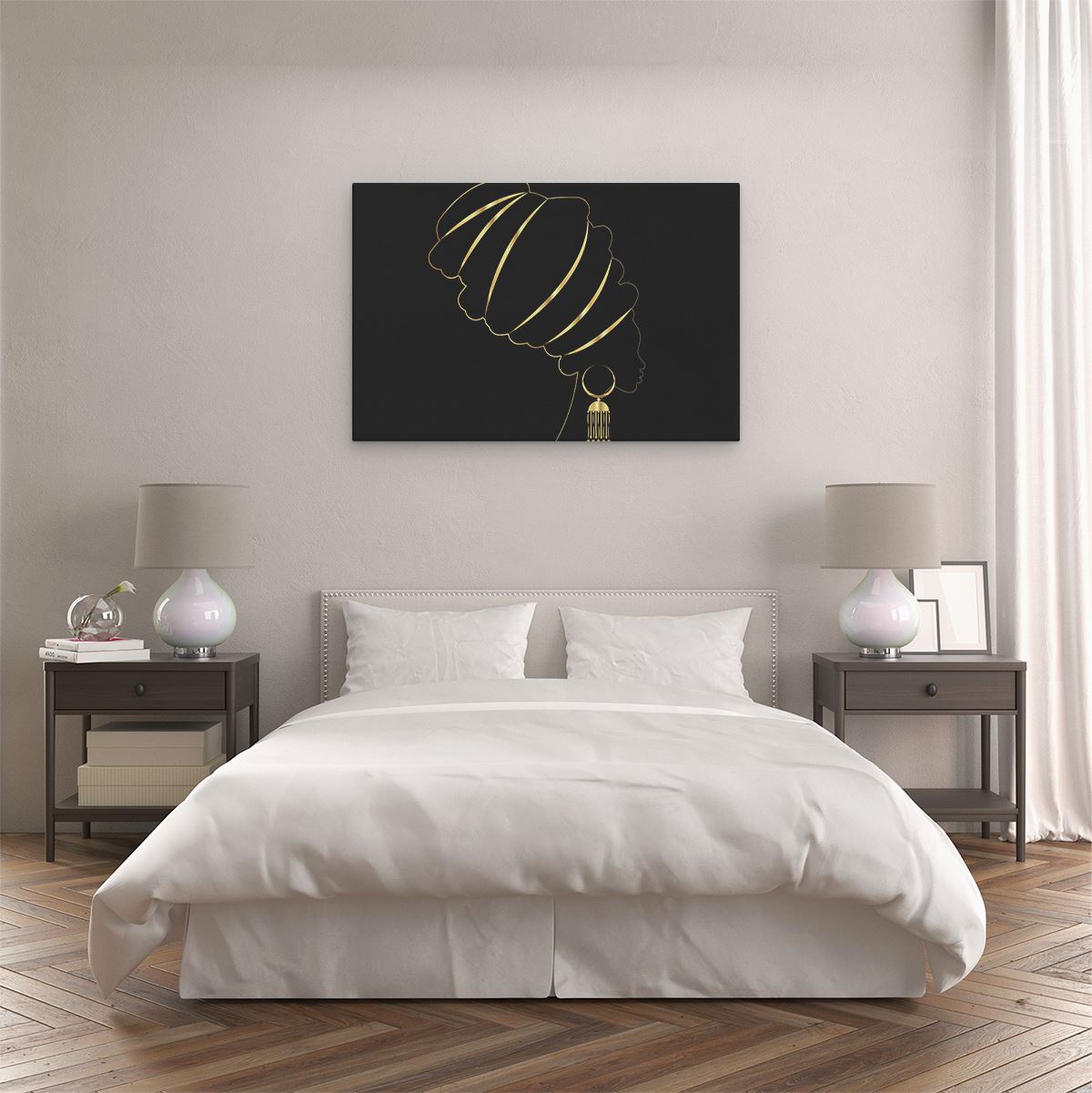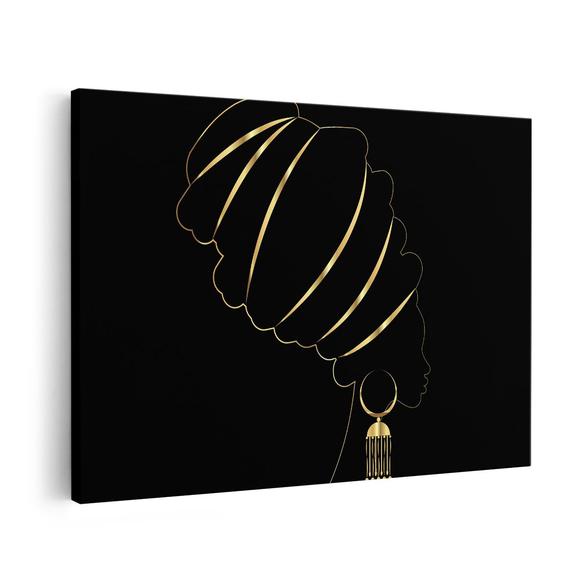 Schilderij Afrikaanse Vrouw Met Gouden Zwarte Tulband