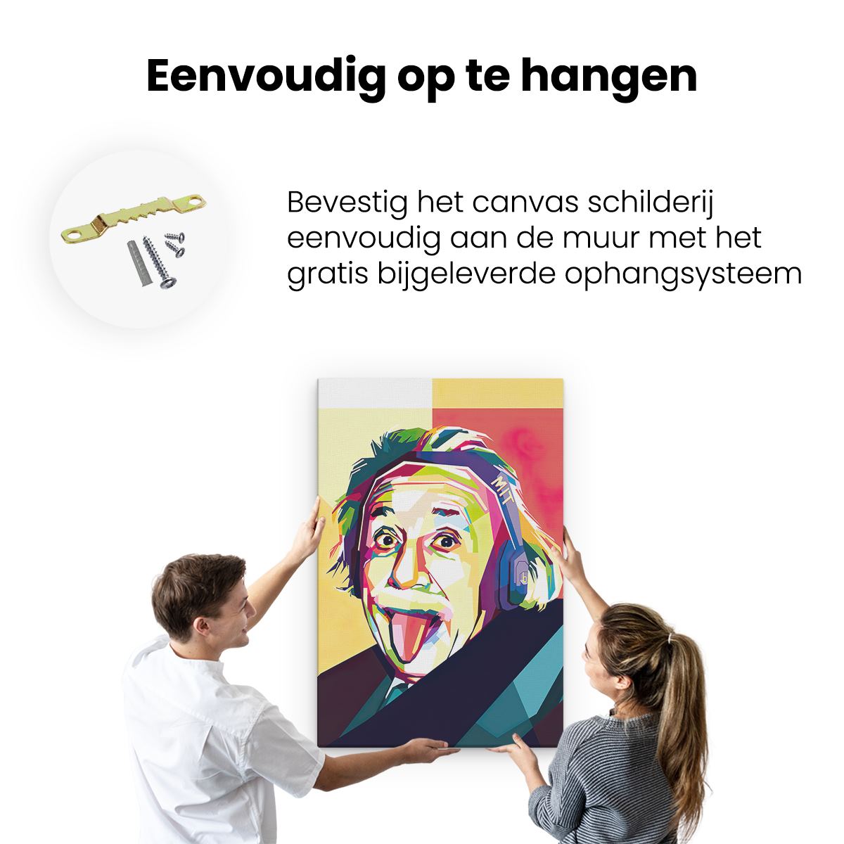 Bij aankoop ontvang je een meegeleverd ophangsysteem, zodat je op een simpele en snelle wijze het schilderij boven de bank of bed kan monteren.