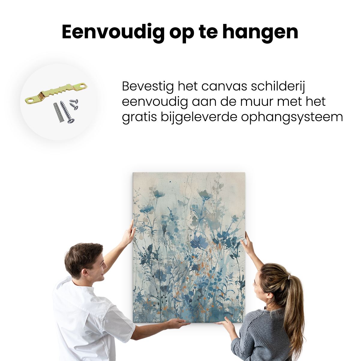 Bij aankoop ontvang je een meegeleverd ophangsysteem, zodat je op een simpele en snelle wijze het schilderij boven de bank of bed kan monteren.