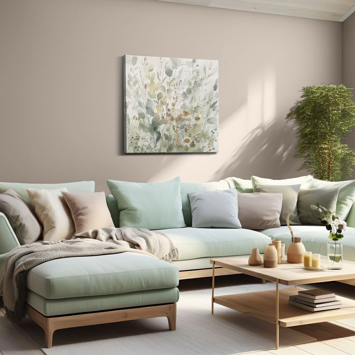 Schilderij Aquarelkunstwerk van Bloemen en Grassen