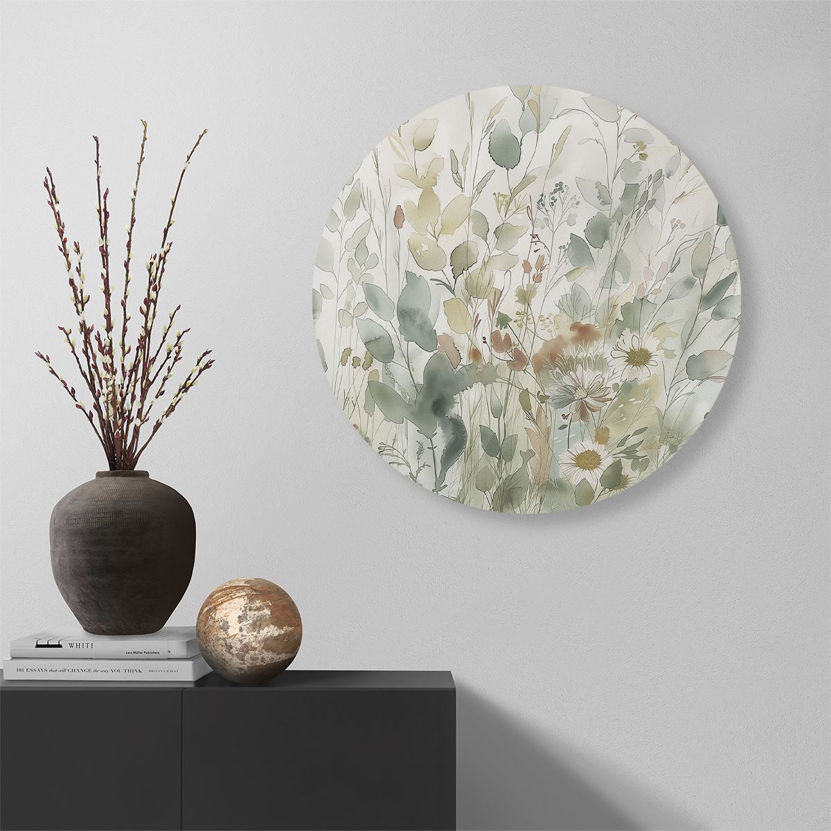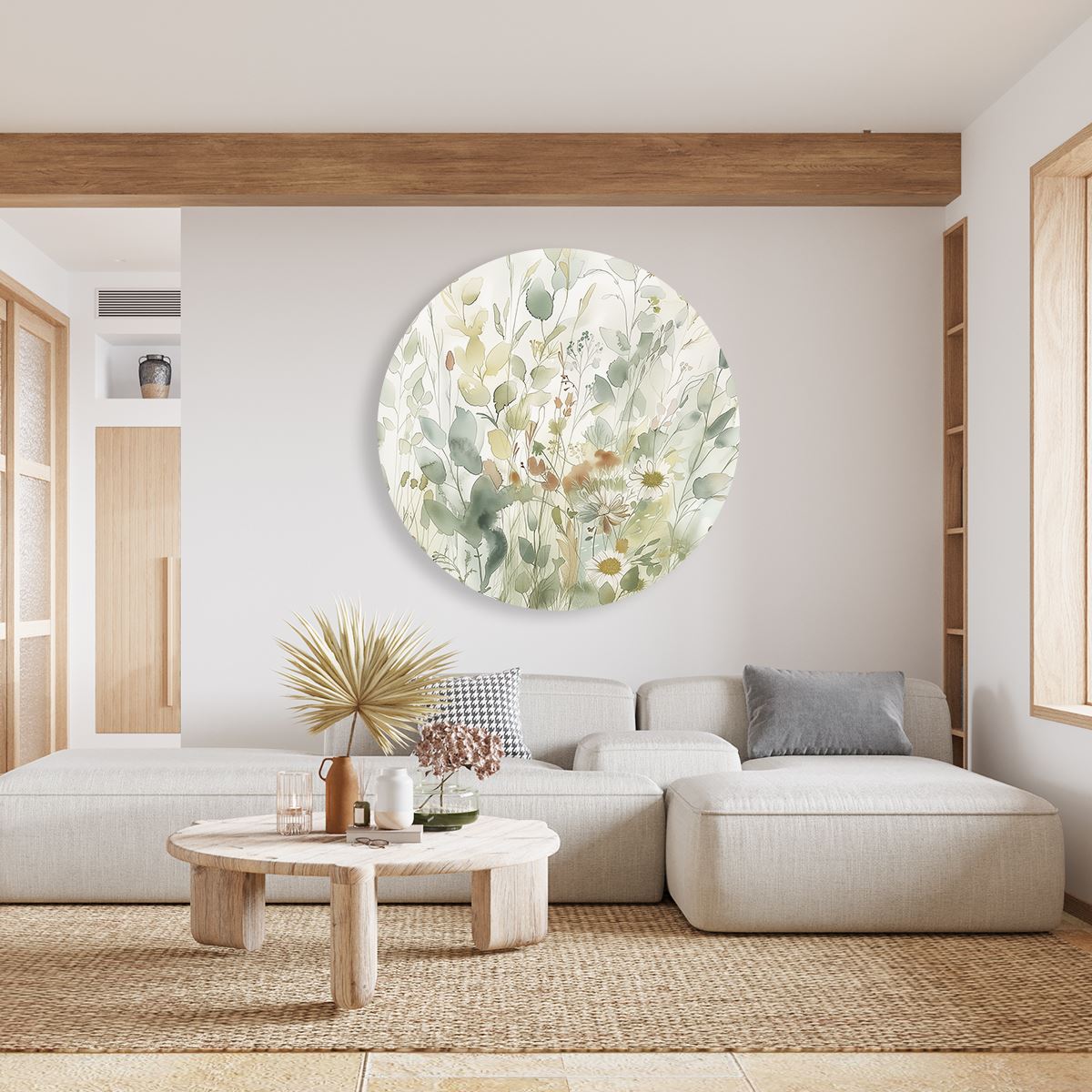Wandcirkel Aquarelkunstwerk van Bloemen en Grassen
