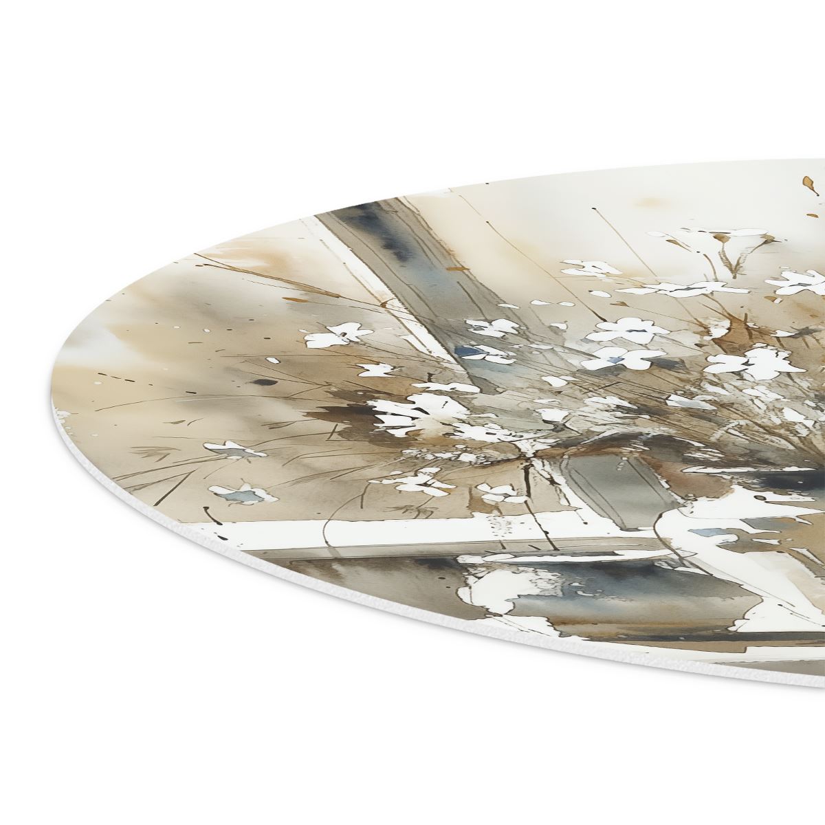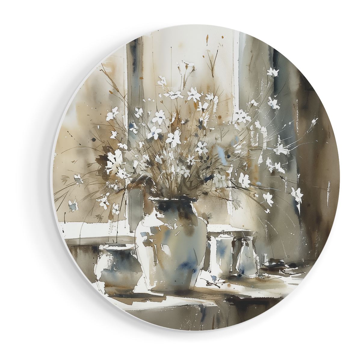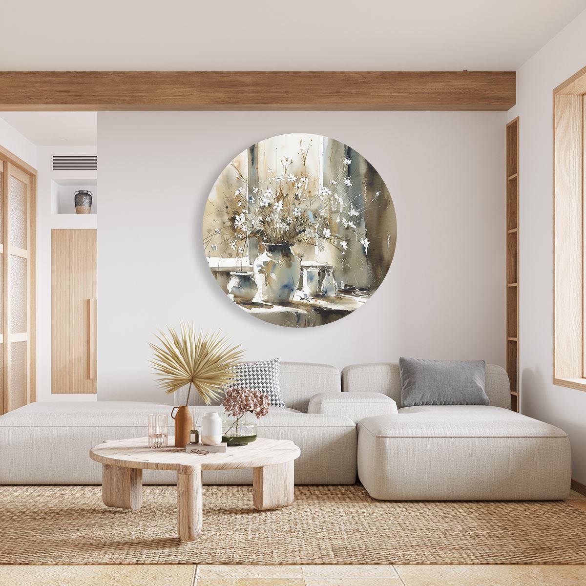 Wandcirkel Aquarelkunstwerk van Bloemen in een Vaas op een Vensterbank