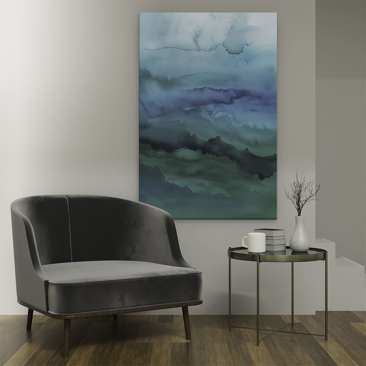 Schilderij Aquarelkunstwerk van een Blauwe en Groene Zee