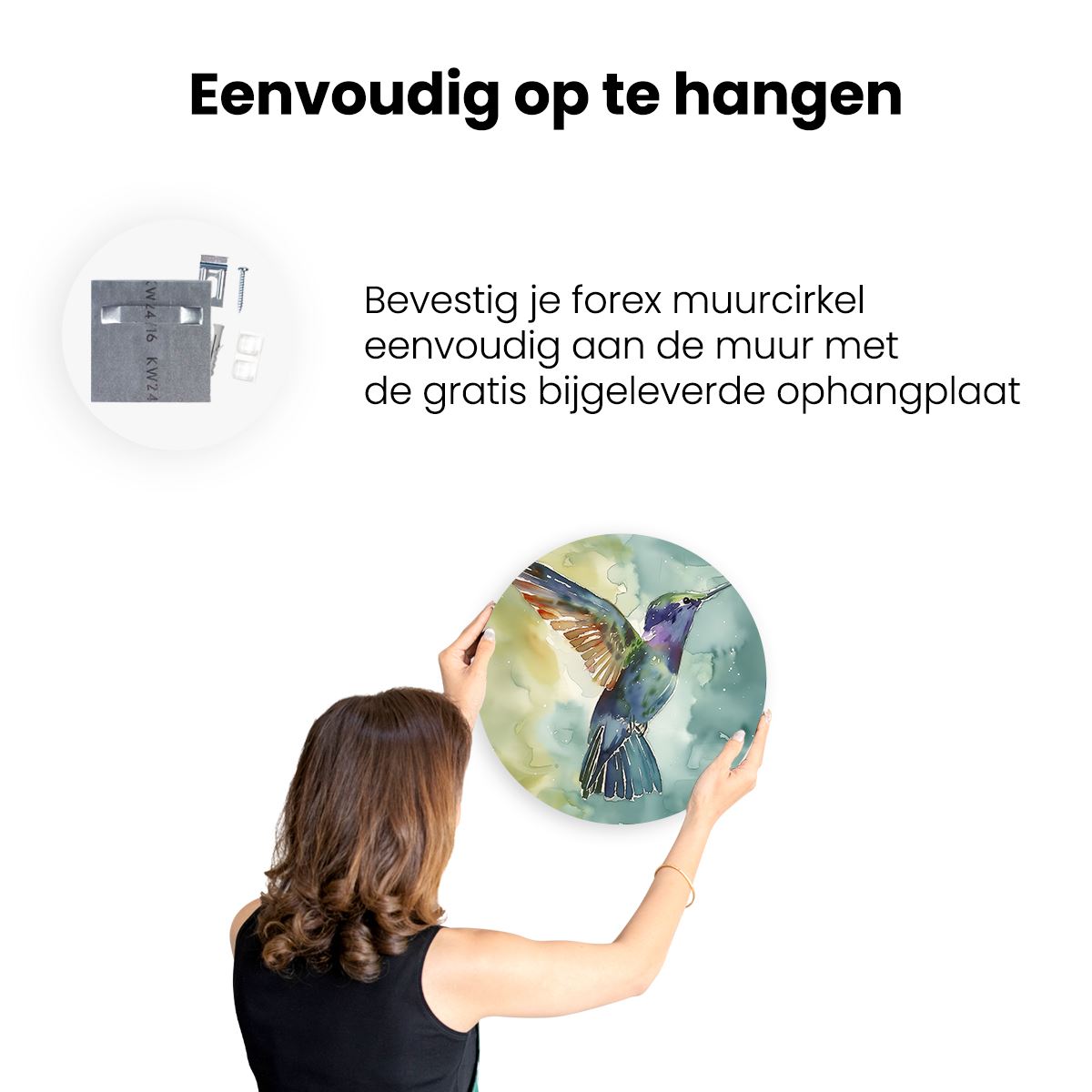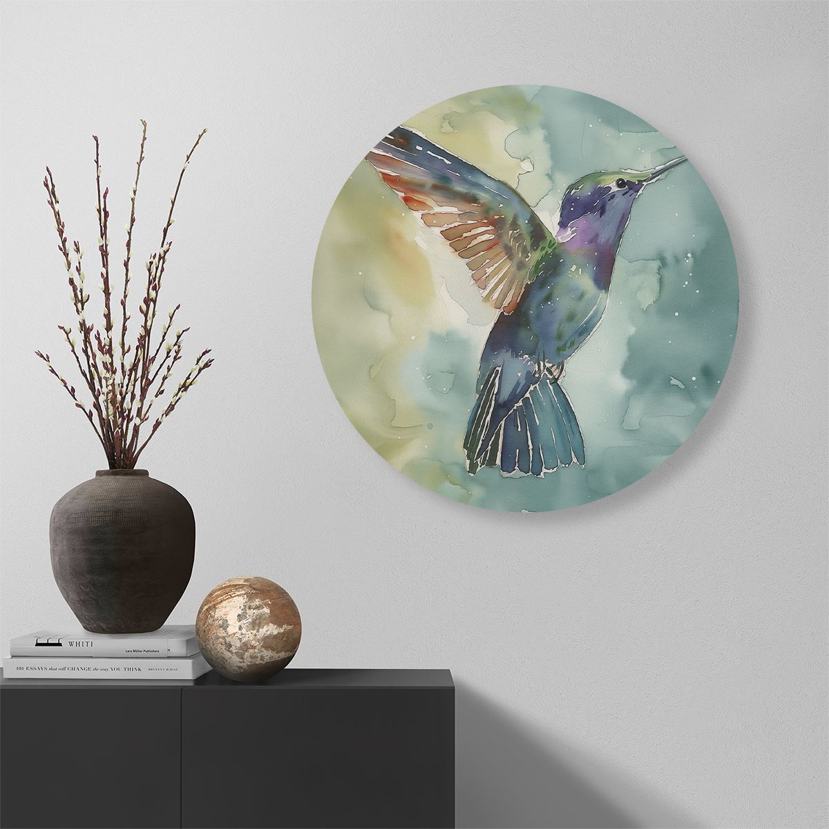Wandcirkel Aquarelkunstwerk van een Kolibrie