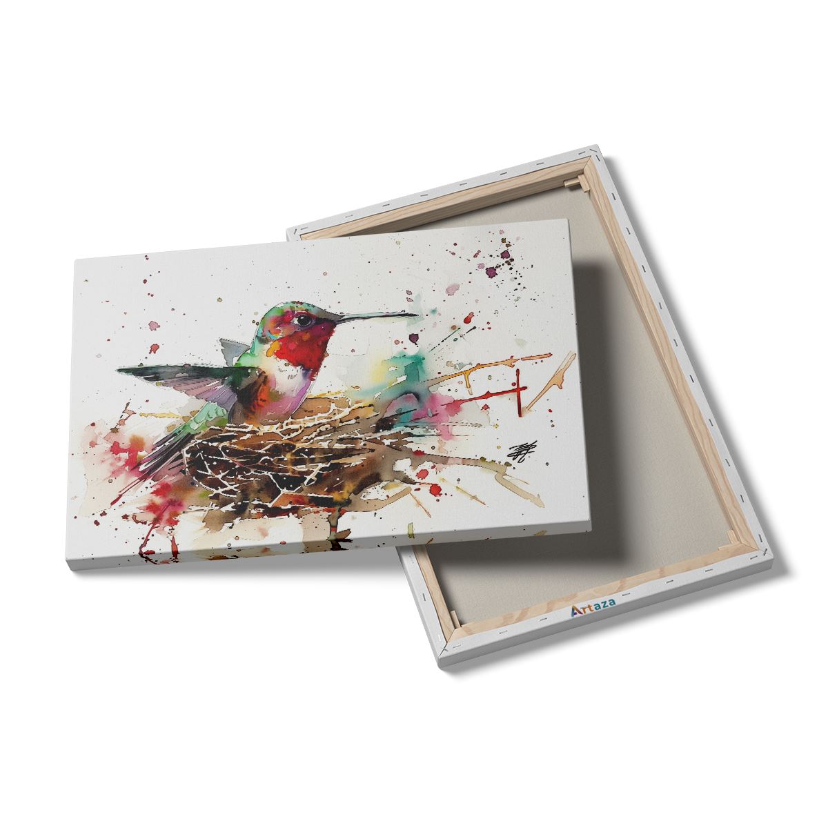 Schilderij Aquarelkunstwerk van een Kolibrie in een Nest