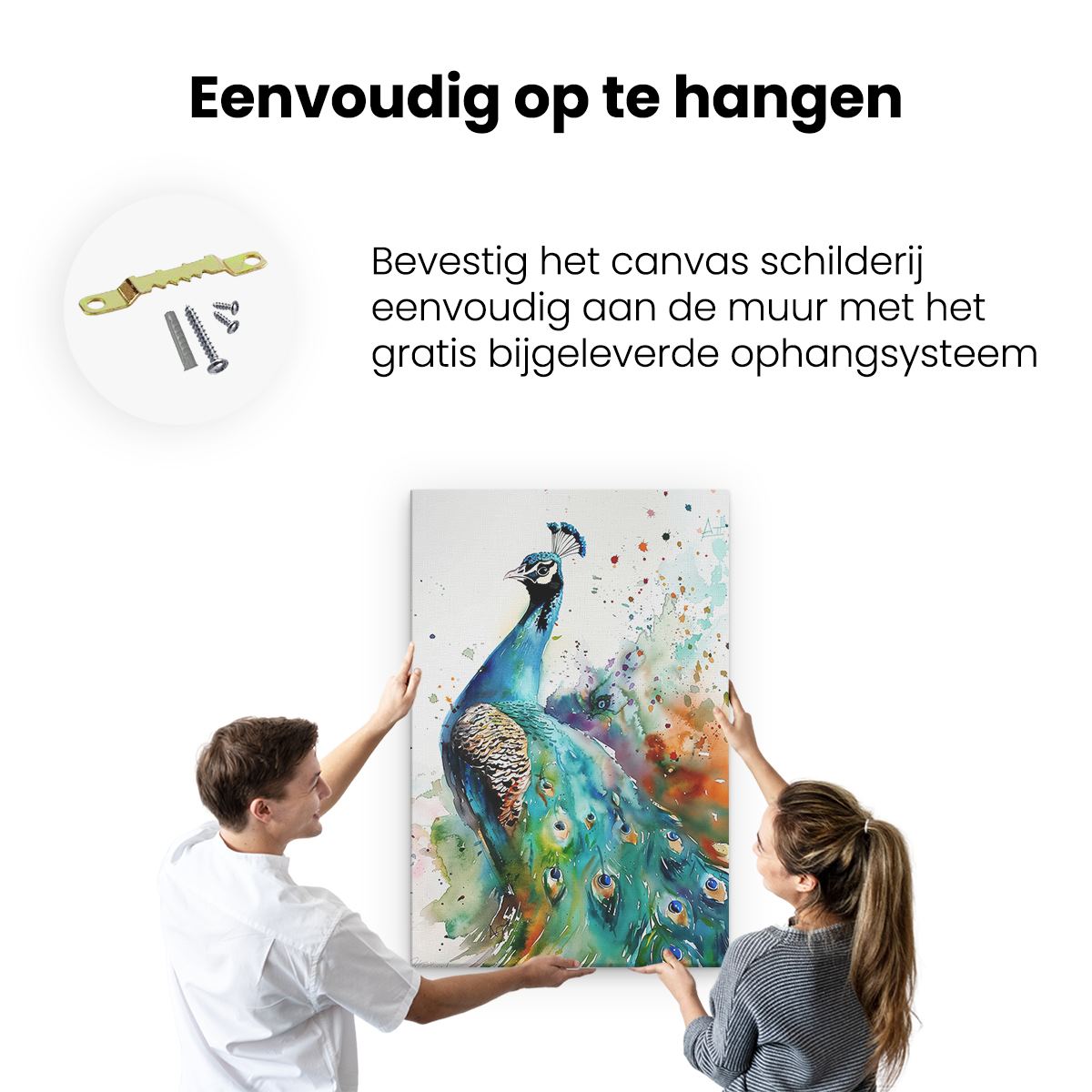 Bij aankoop ontvang je een meegeleverd ophangsysteem, zodat je op een simpele en snelle wijze het schilderij boven de bank of bed kan monteren.