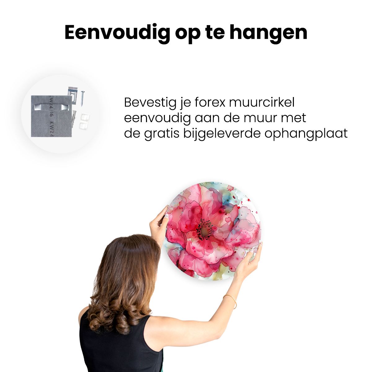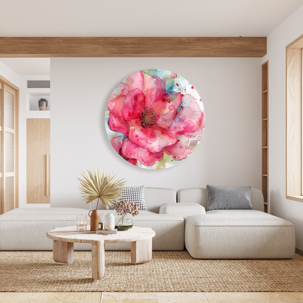 Wandcirkel Aquarelkunstwerk van een Roze Bloem