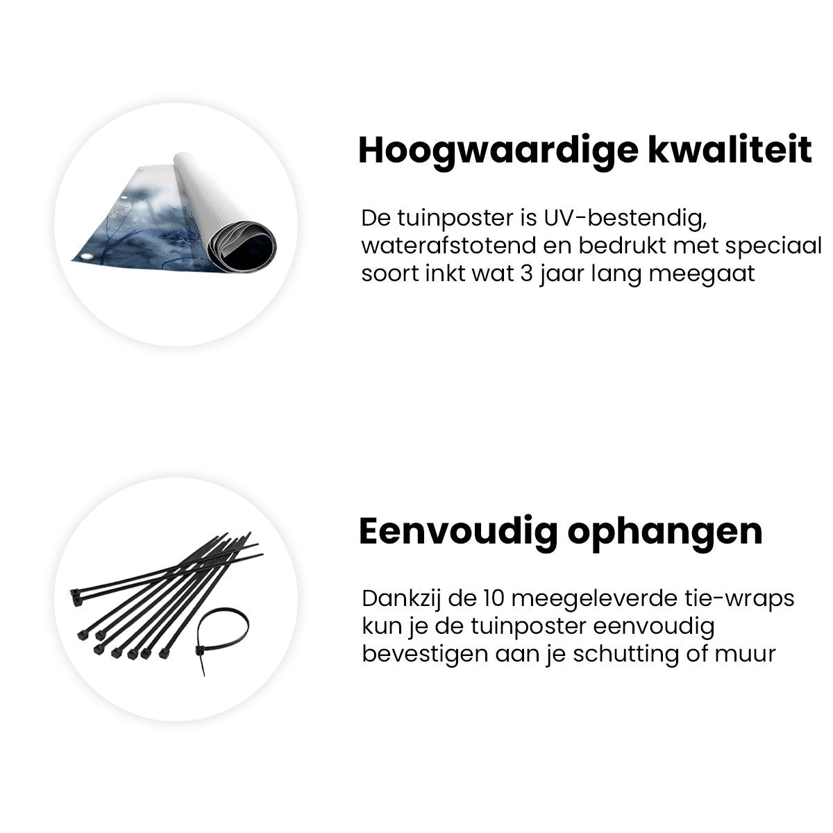 Bij aankoop ontvang je een meegeleverd ophangsysteem, zodat je op een simpele en snelle wijze de tuinposter kan ophangen.