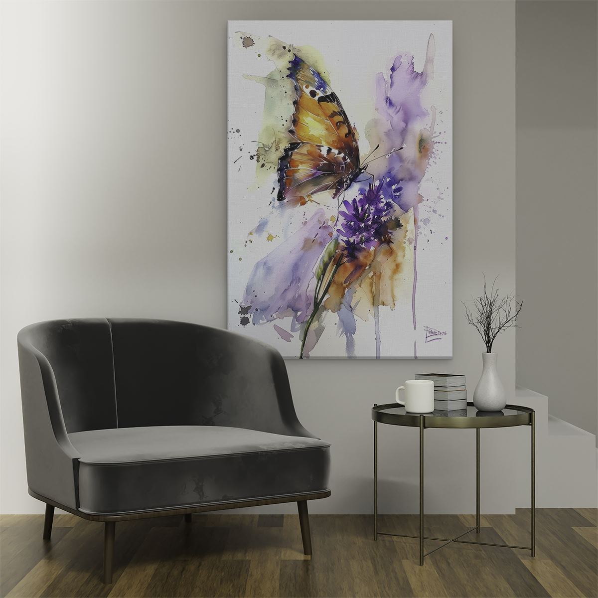 Schilderij Aquarelkunstwerk van een Vlinder op een Bloem