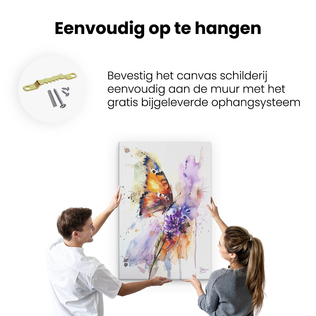 Bij aankoop ontvang je een meegeleverd ophangsysteem, zodat je op een simpele en snelle wijze het schilderij boven de bank of bed kan monteren.
