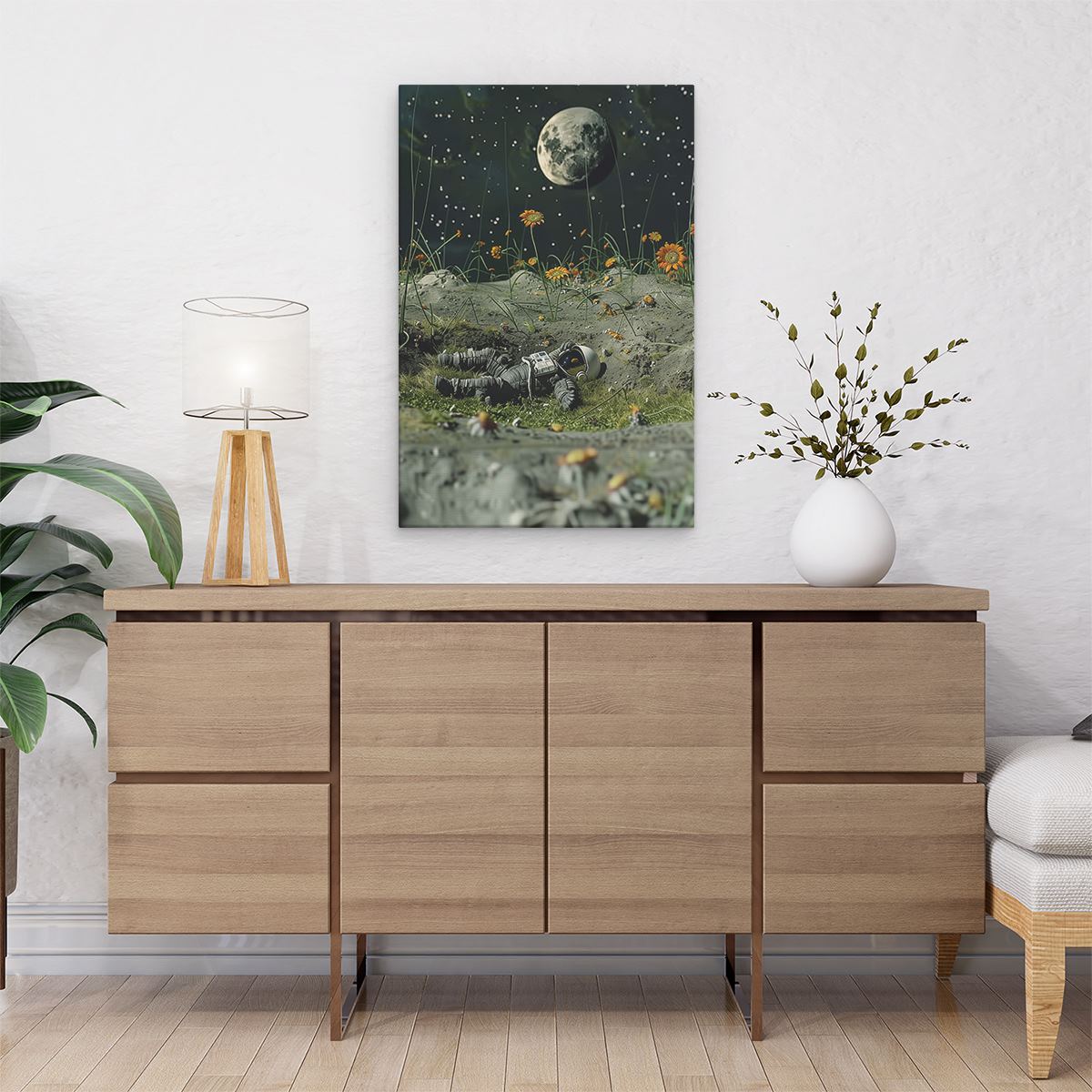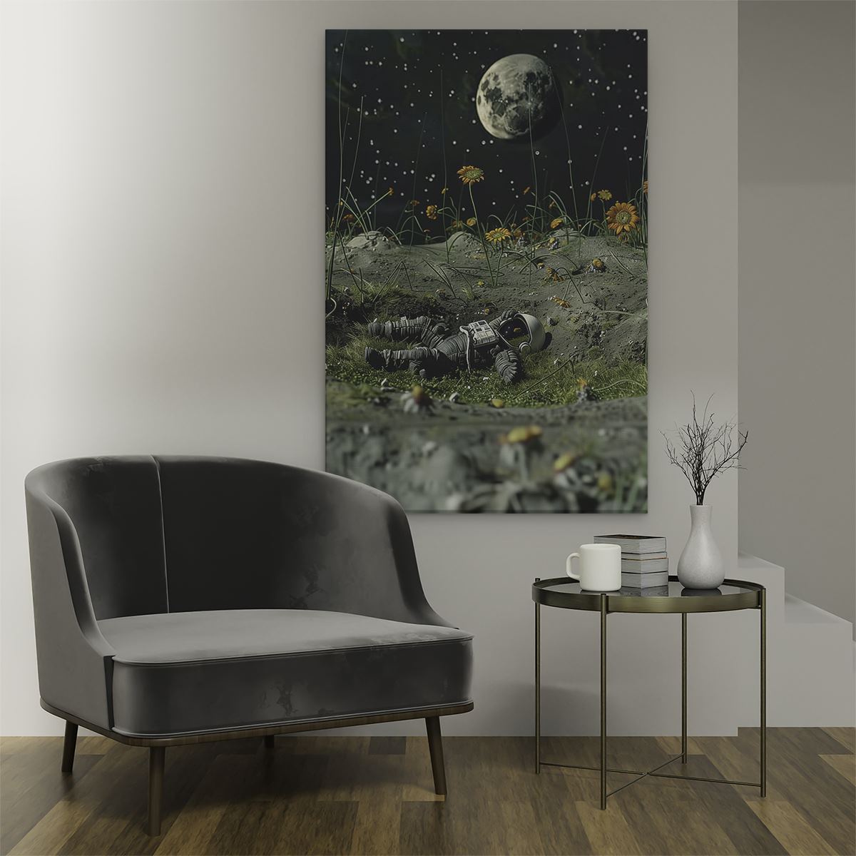 Schilderij Astronaut die op de Grond ligt met Bloemen