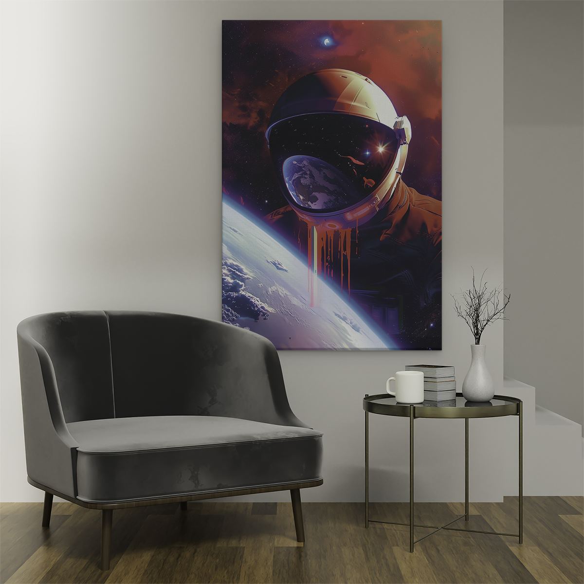 Schilderij Astronaut in de Ruimte met Bloed op zijn Gezicht