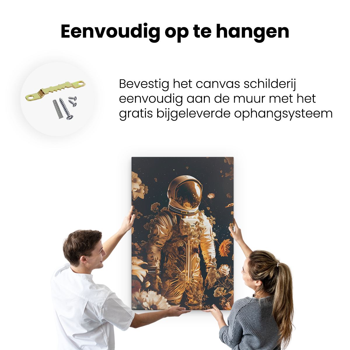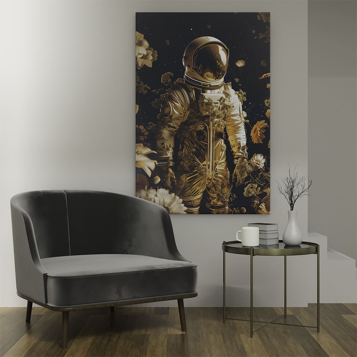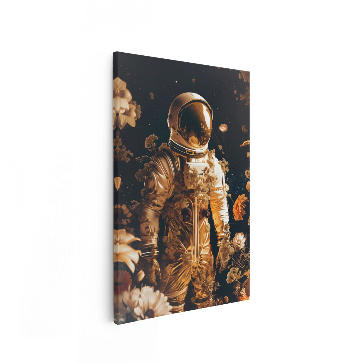 Schilderij Astronaut in de Ruimte Omringd door Bloemen