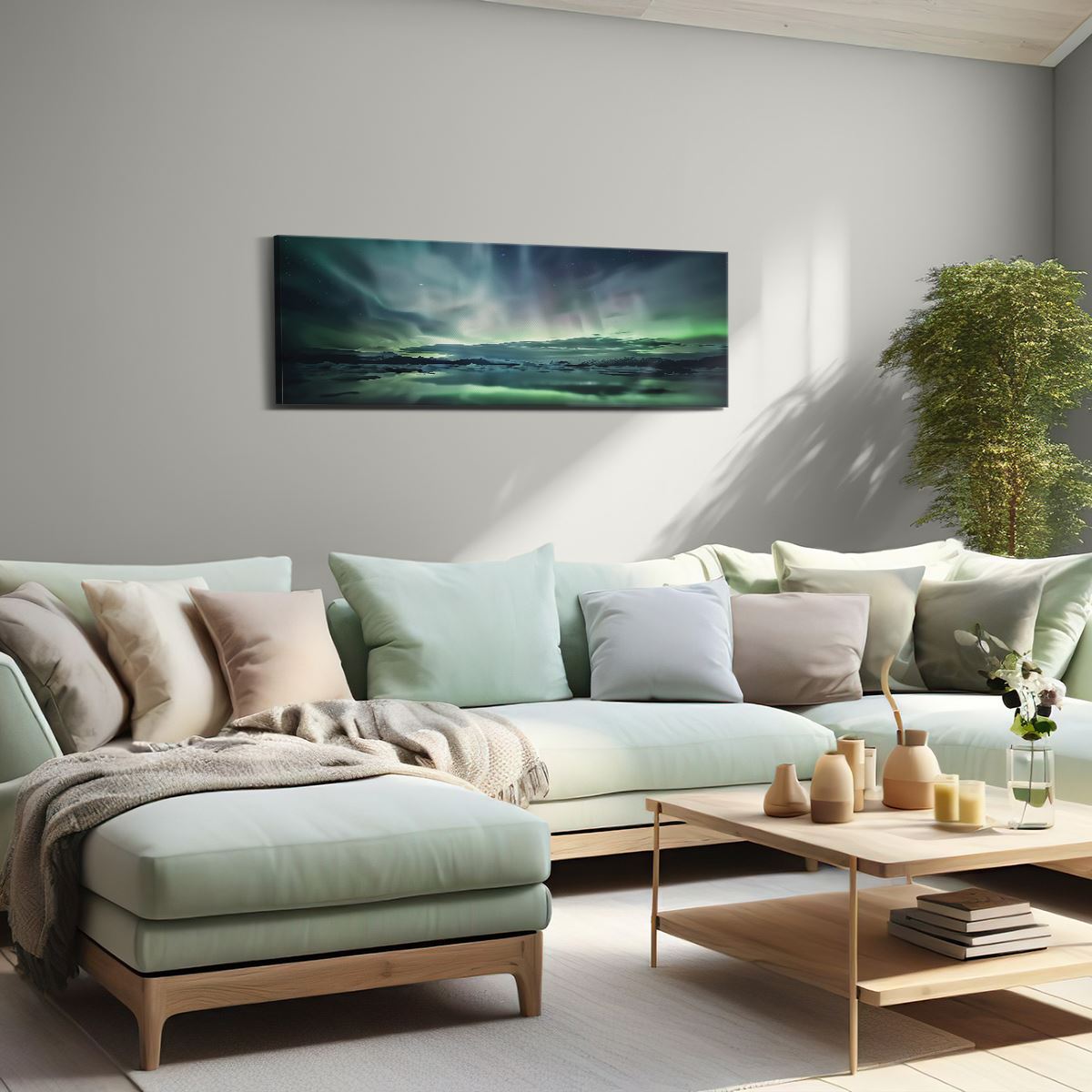 Schilderij Aurora Boorde Zich boven IJsbergen in IJsland