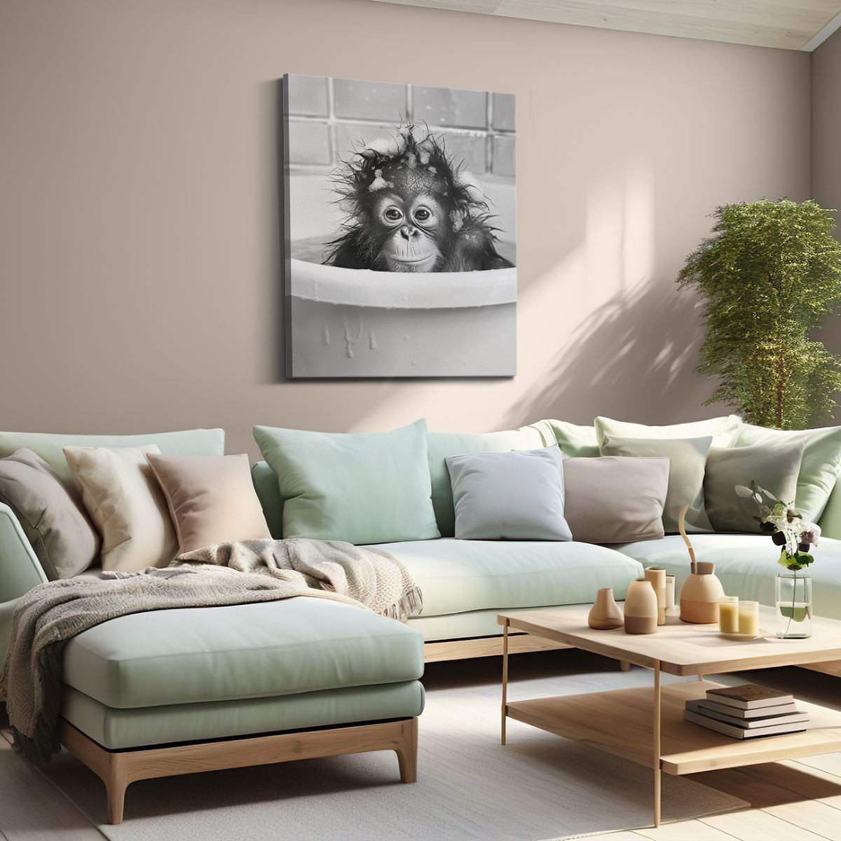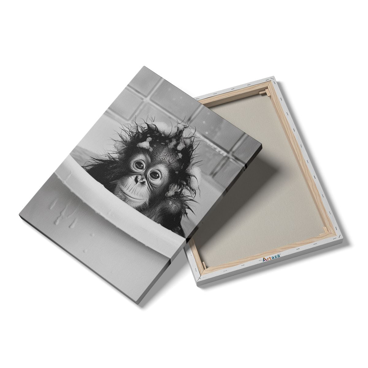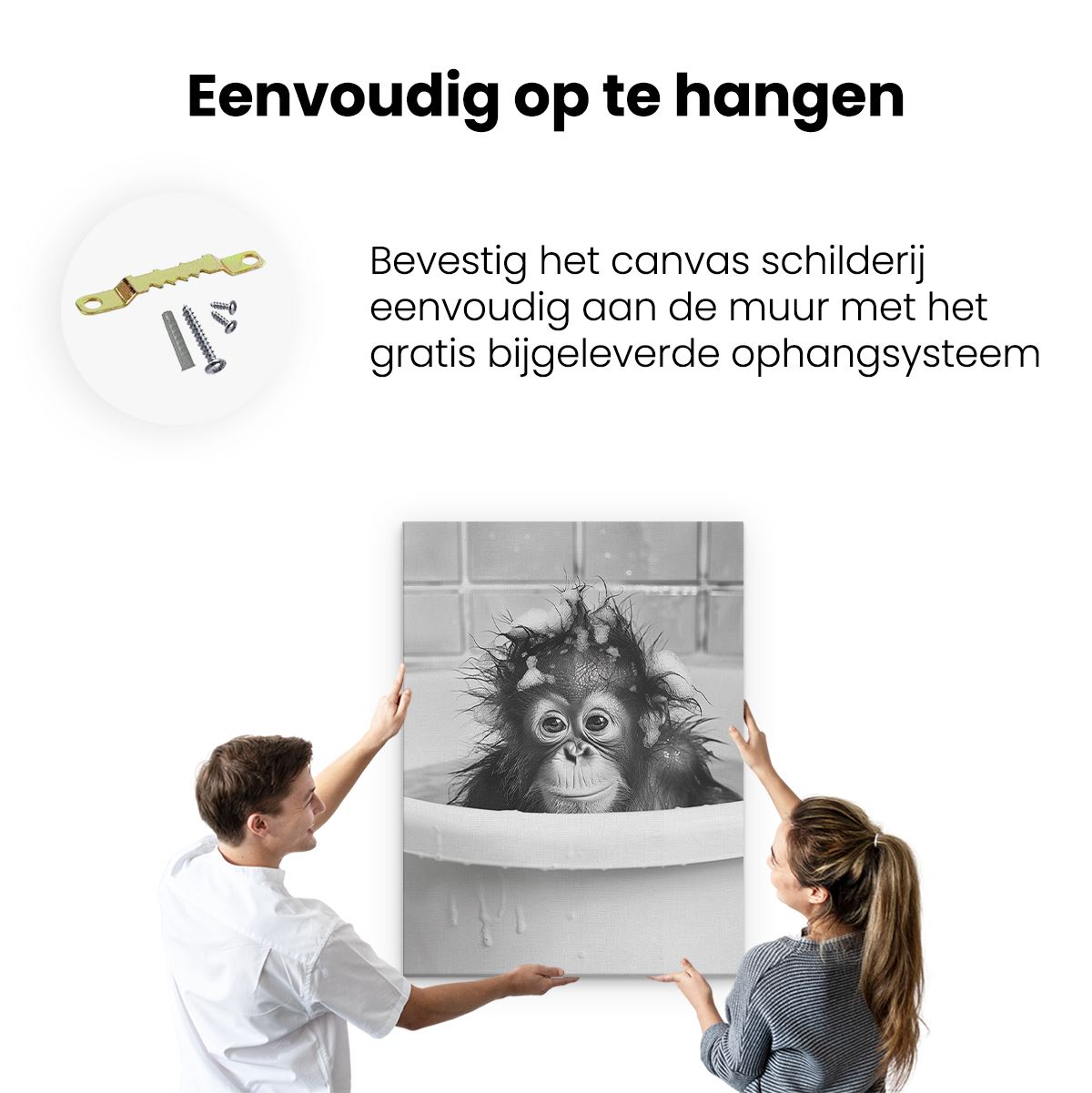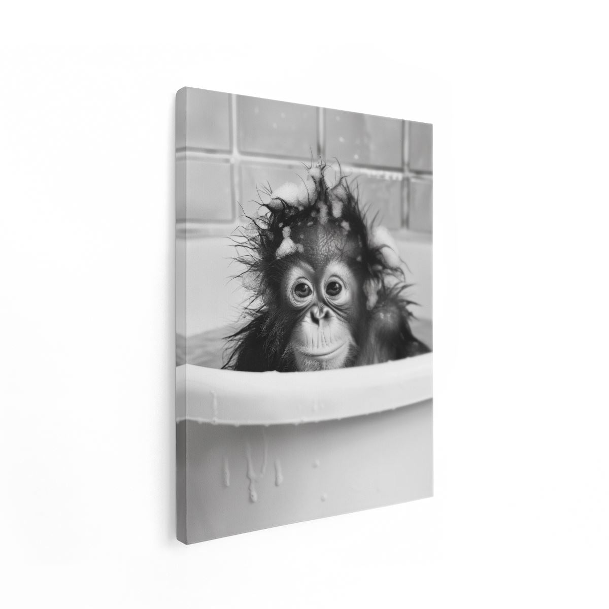 Schilderij Baby-Orang-Oetan Neemt een Bad in een Badkuip