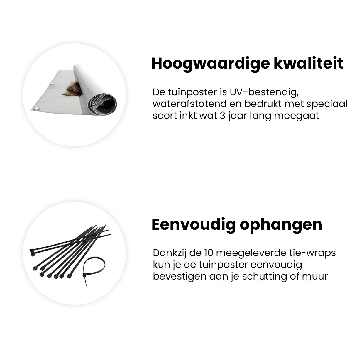 Bij aankoop ontvang je een meegeleverd ophangsysteem, zodat je op een simpele en snelle wijze de tuinposter kan ophangen.