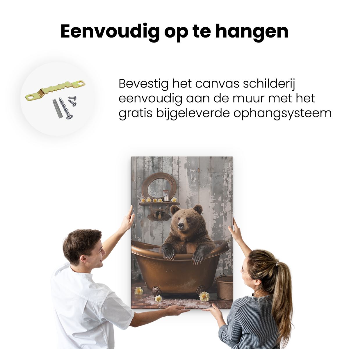 Bij aankoop ontvang je een meegeleverd ophangsysteem, zodat je op een simpele en snelle wijze het schilderij boven de bank of bed kan monteren.