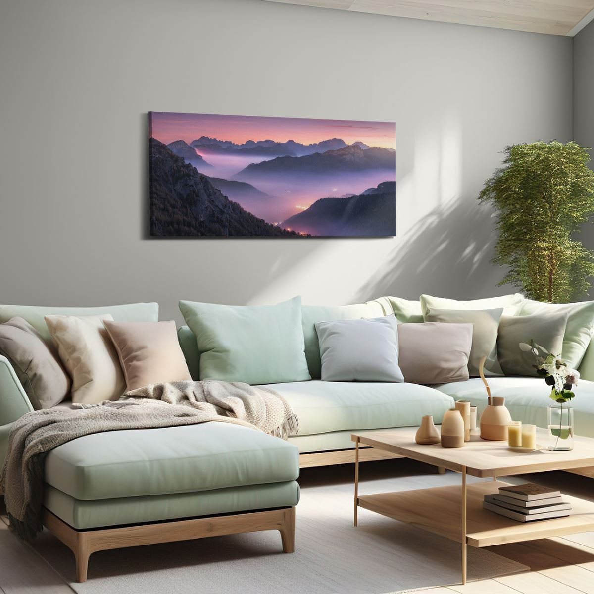 Schilderij Bergen Landschap In Italië Tijdens Zonsondergang