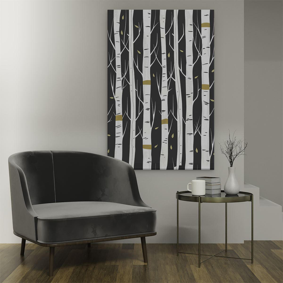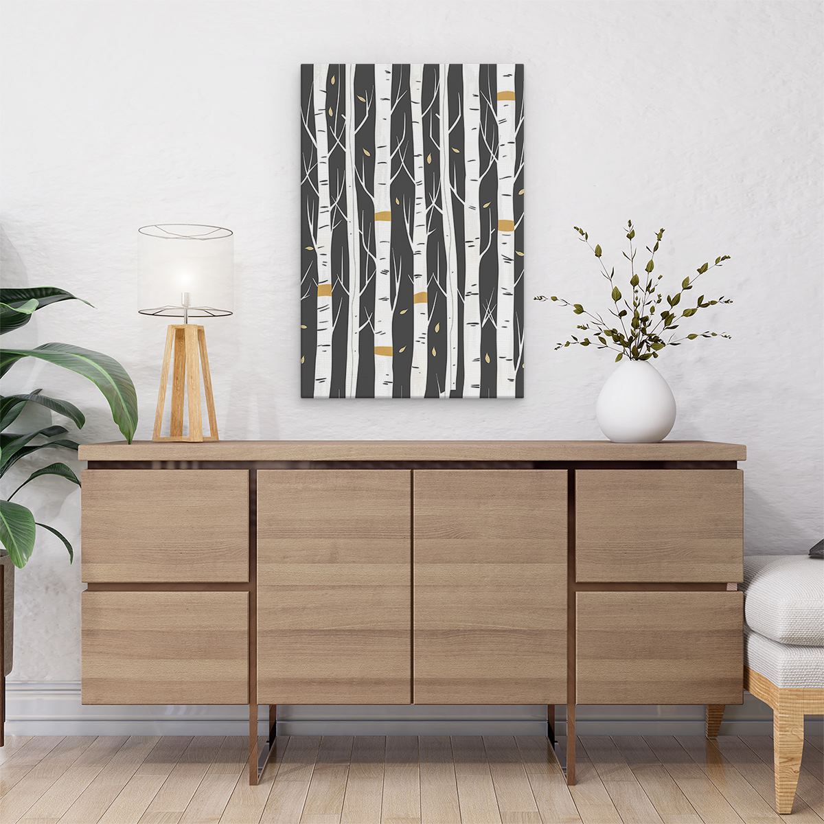 Schilderij Berkenbomen op een Zwarte Achtergrond