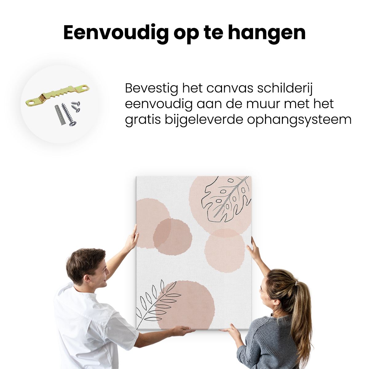 Bij aankoop ontvang je een meegeleverd ophangsysteem, zodat je op een simpele en snelle wijze het schilderij boven de bank of bed kan monteren.