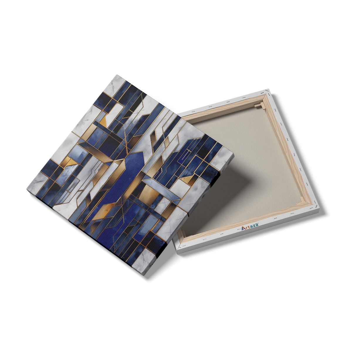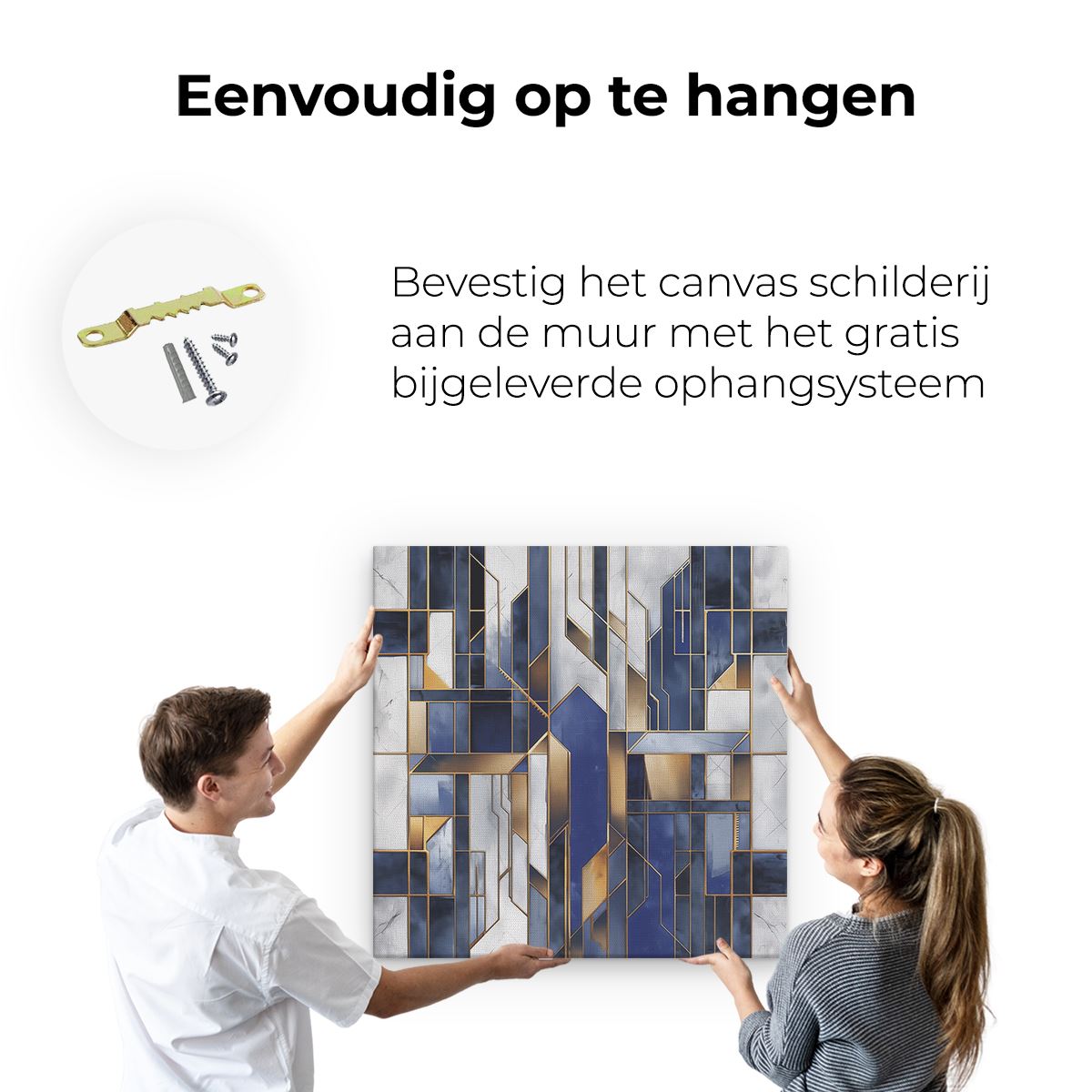 Schilderij Blauw en Goud Geometrisch Patroon op een Witte Achtergrond