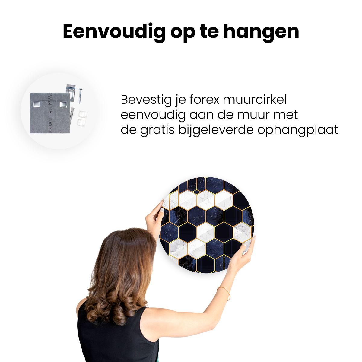 Wandcirkel Blauw en Goud Marmerpatroon met Zeshoeken