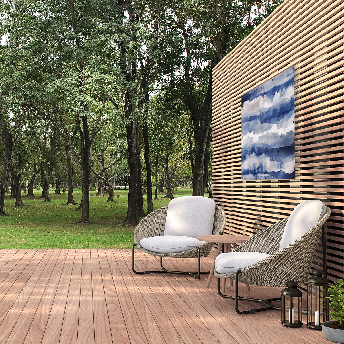 Tuinposter Blauw en Wit Aquarelkunstwerk