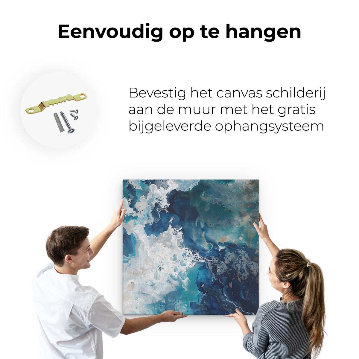 Bij aankoop ontvang je een meegeleverd ophangsysteem, zodat je op een simpele en snelle wijze het schilderij boven de bank of bed kan monteren.