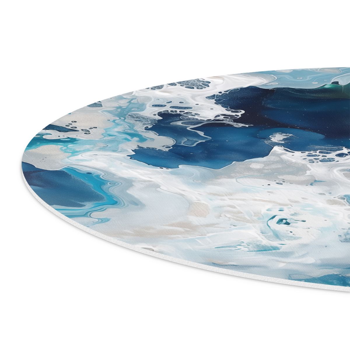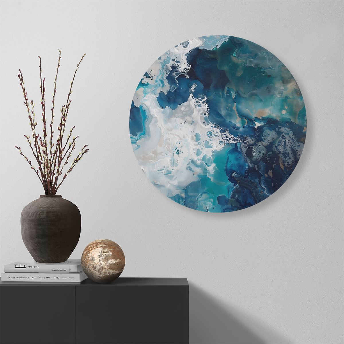 Wandcirkel Blauw en Wit Kunstwerk op een Witte Achtergrond