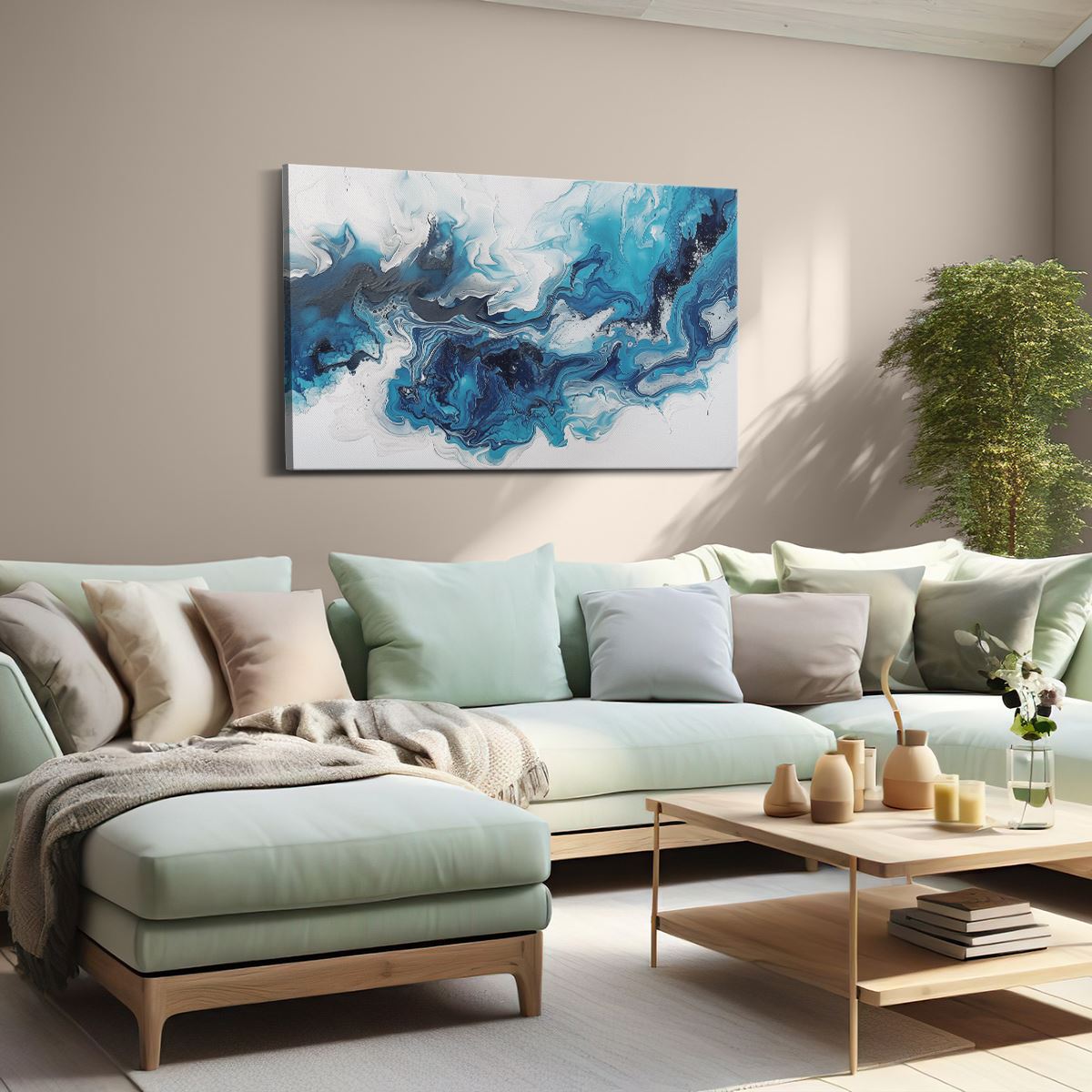 Schilderij Blauw en Wit Kunstwerk op een Witte Achtergrond