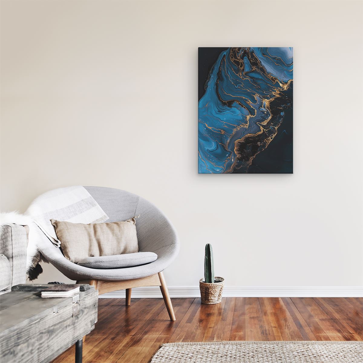 Schilderij Blauwe en Gouden Wervelingen in het Water