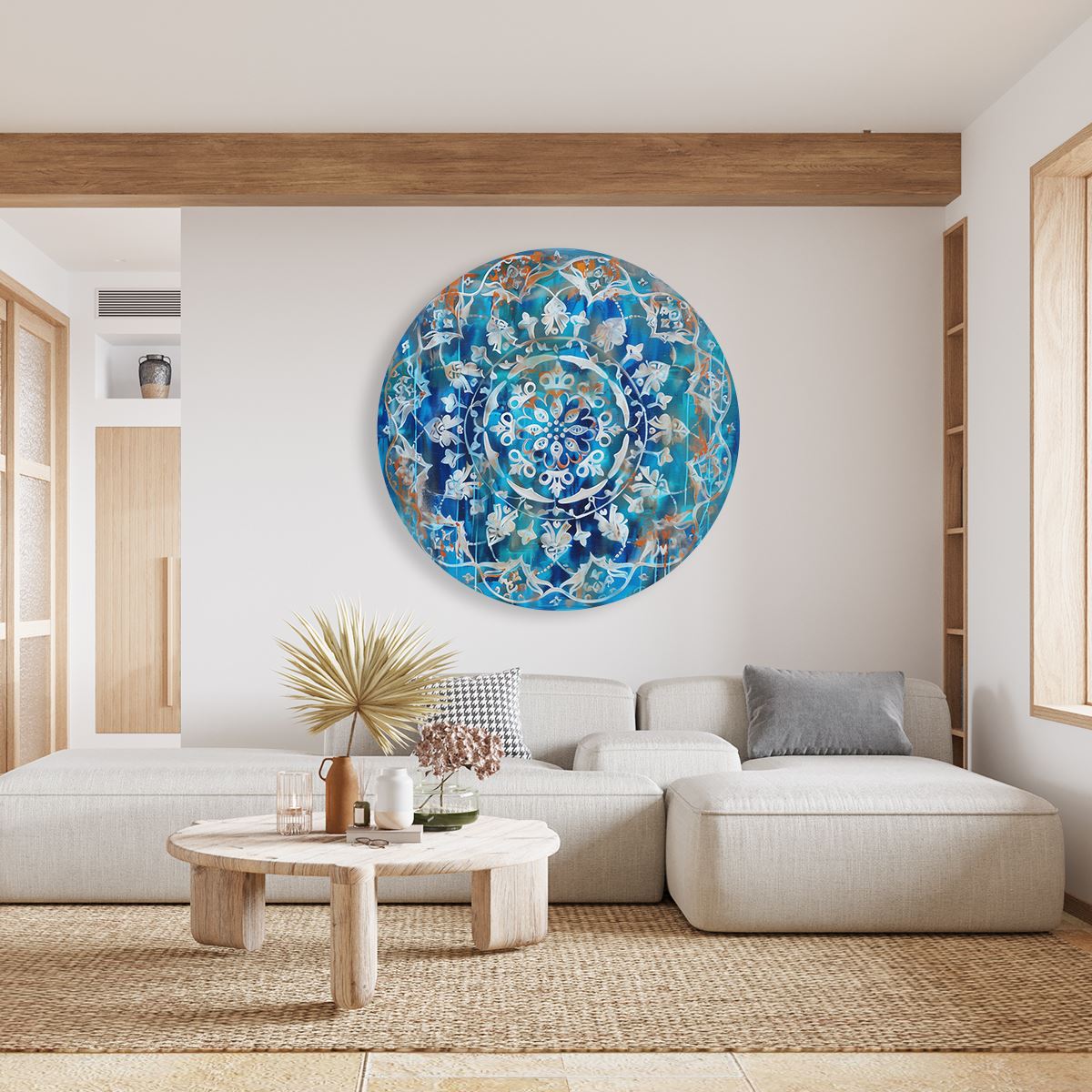 Wandcirkel Blauwe en Witte Mandala