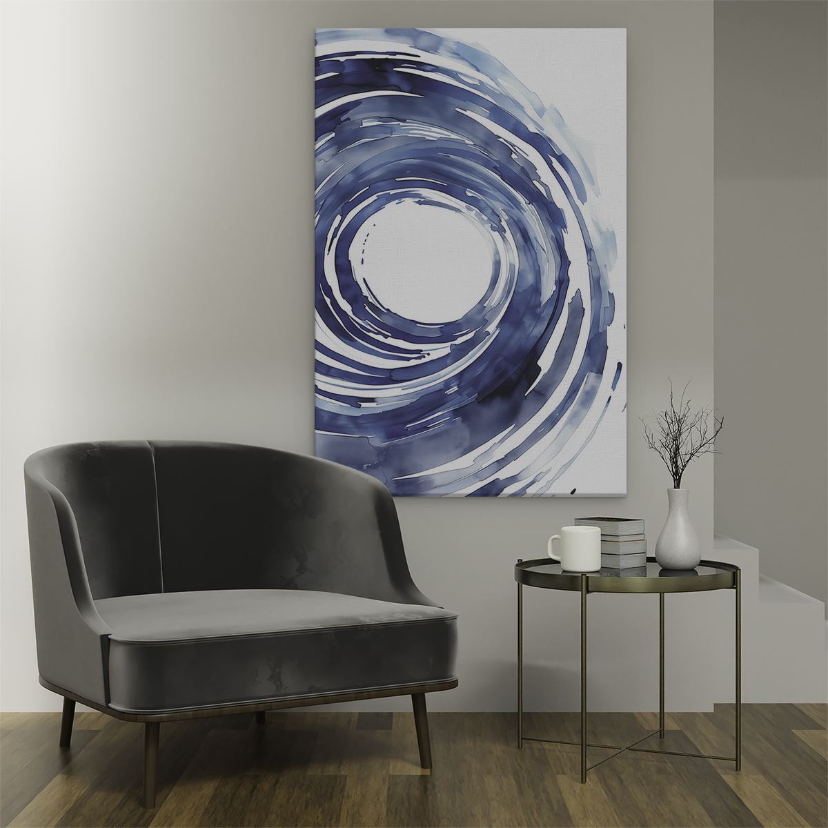 Schilderij Blauwe Werveling van Water op een Witte Achtergrond